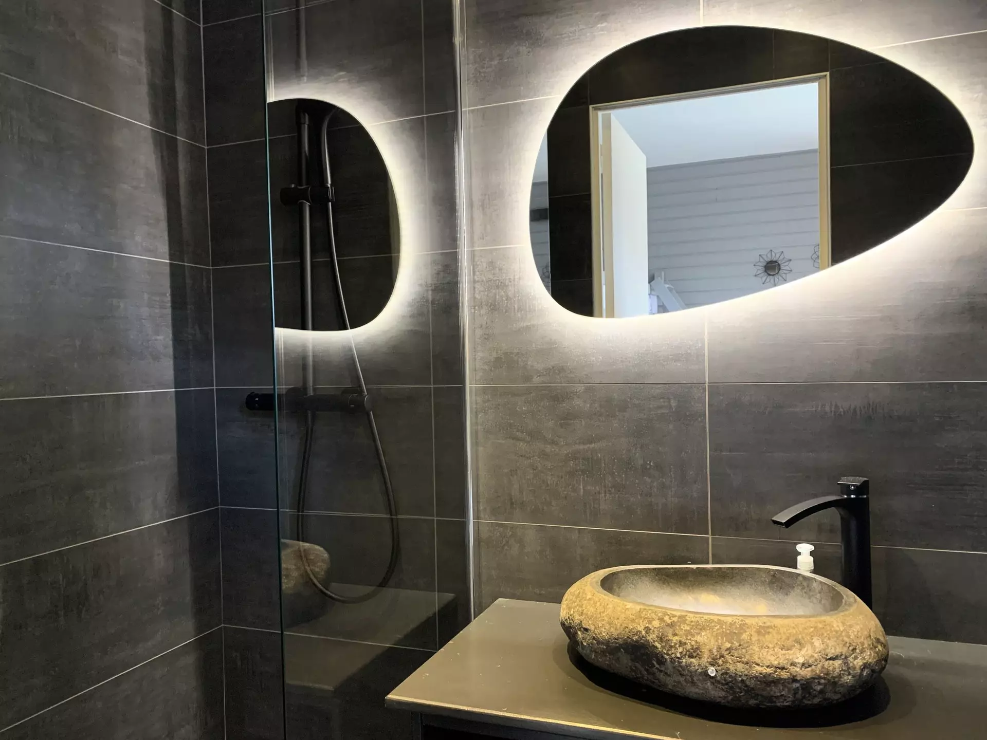 * Open kitchen: refrigerator, induction hob, oven, Nespresso coffee machine;
