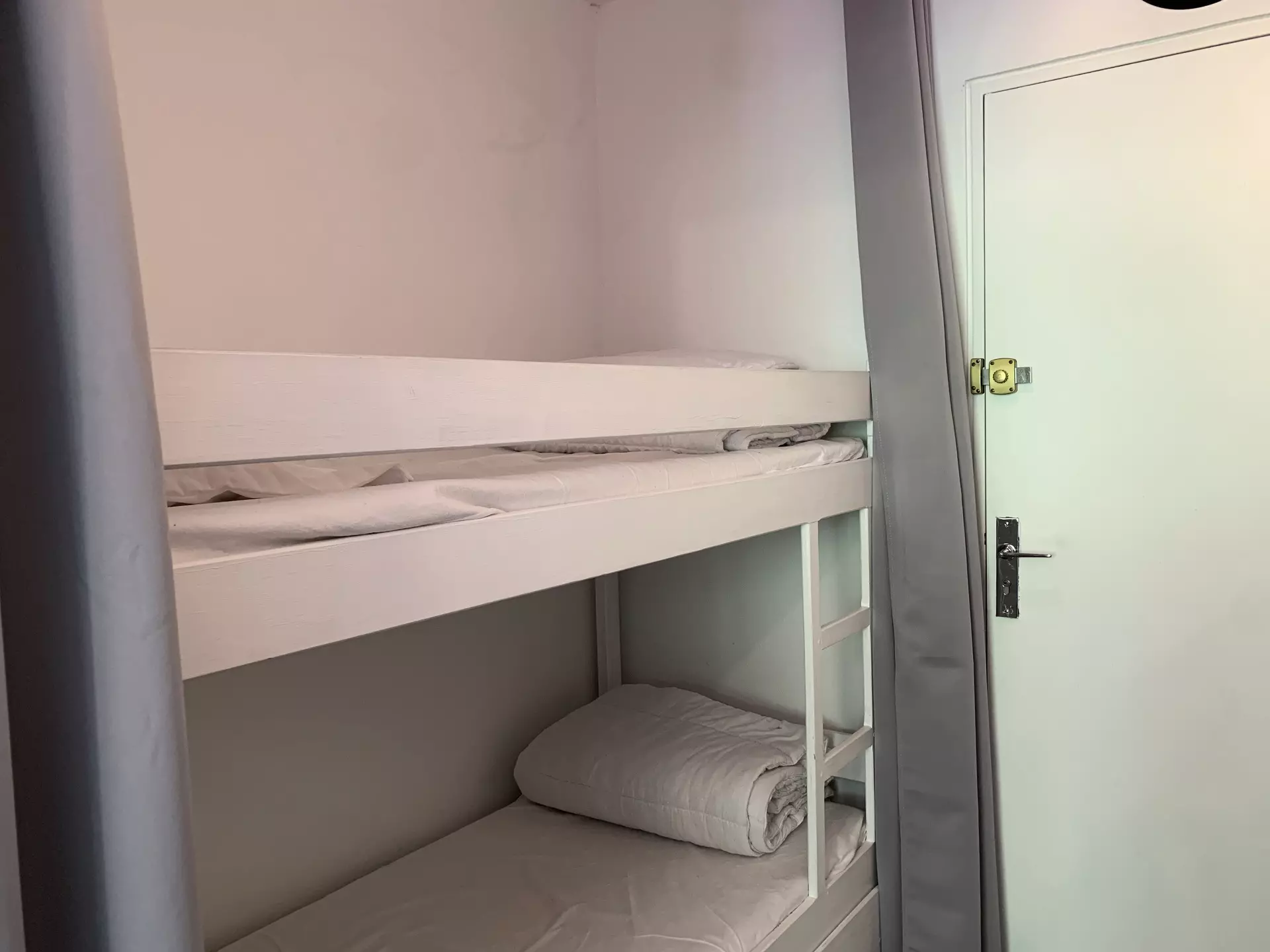 * Entrance: 2 bunk beds, curtain separation;