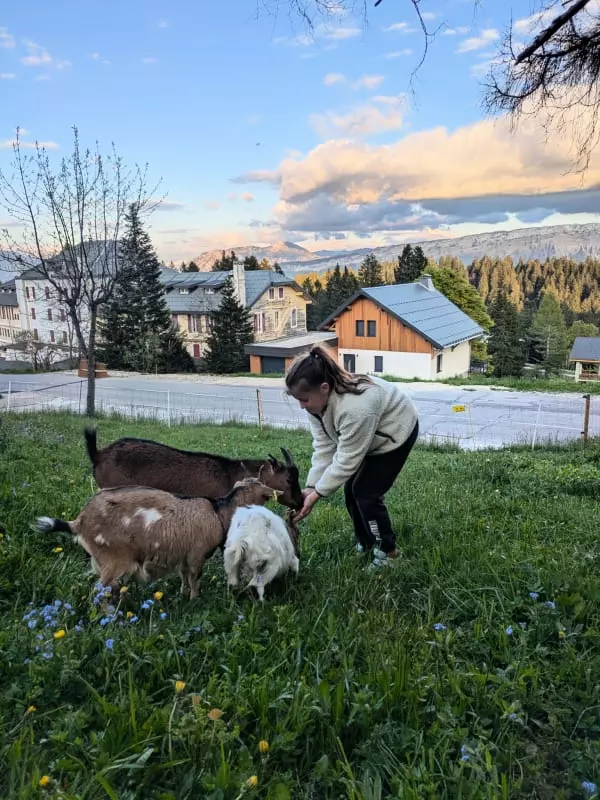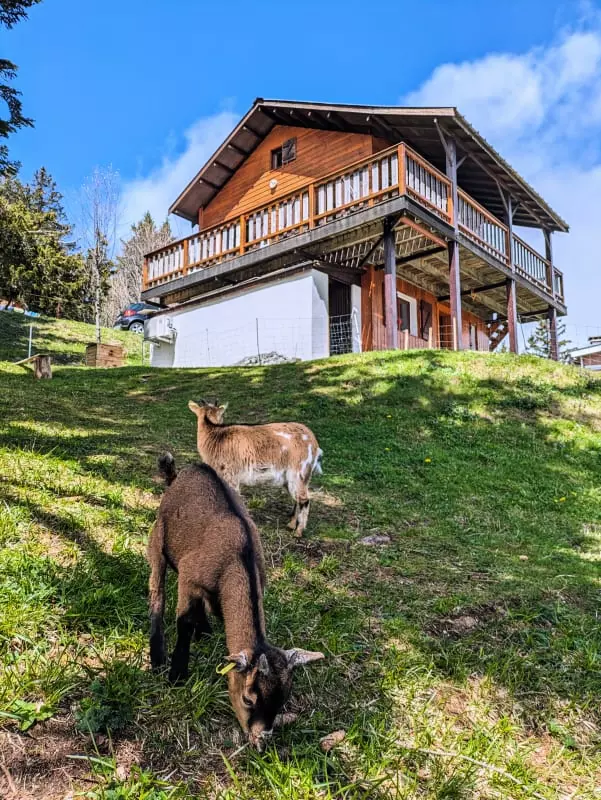 You will have access to the chalet, terrace, large garden with small goats. Parking space