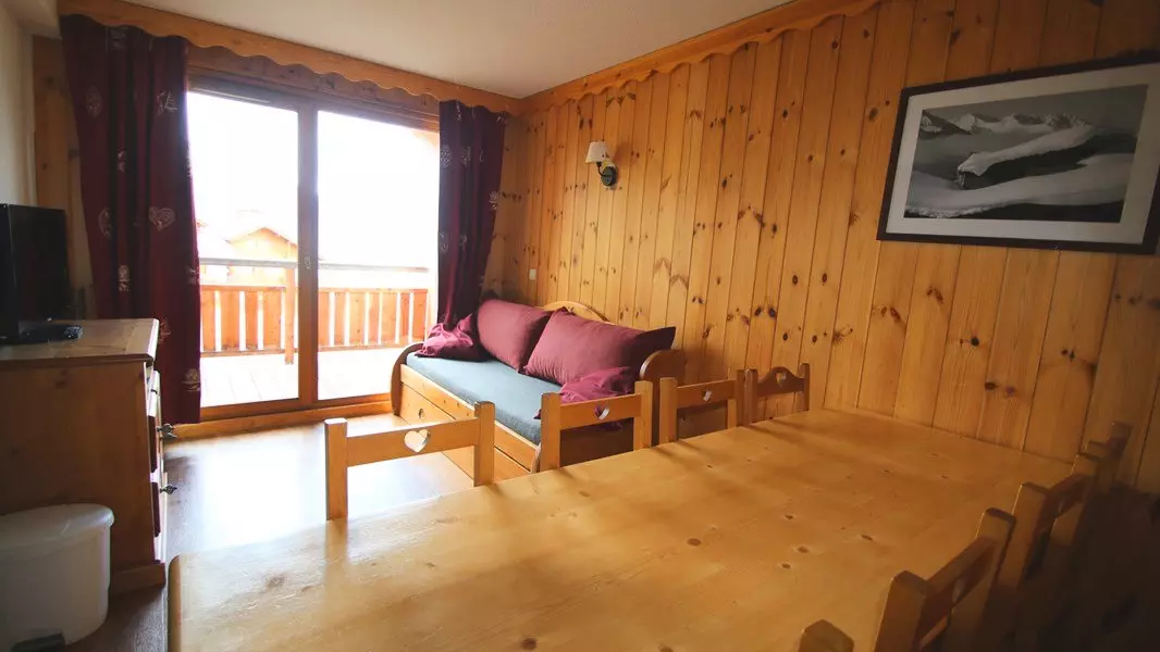 - Living room with convertible sofa bed (2/80x190 or 160x190), dining table, flat screen TV and balcony equipped with a table and two chairs.