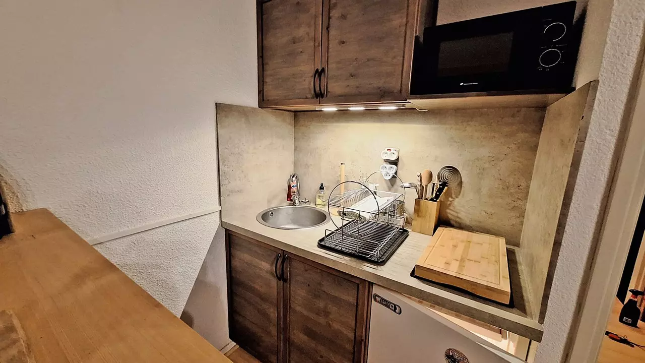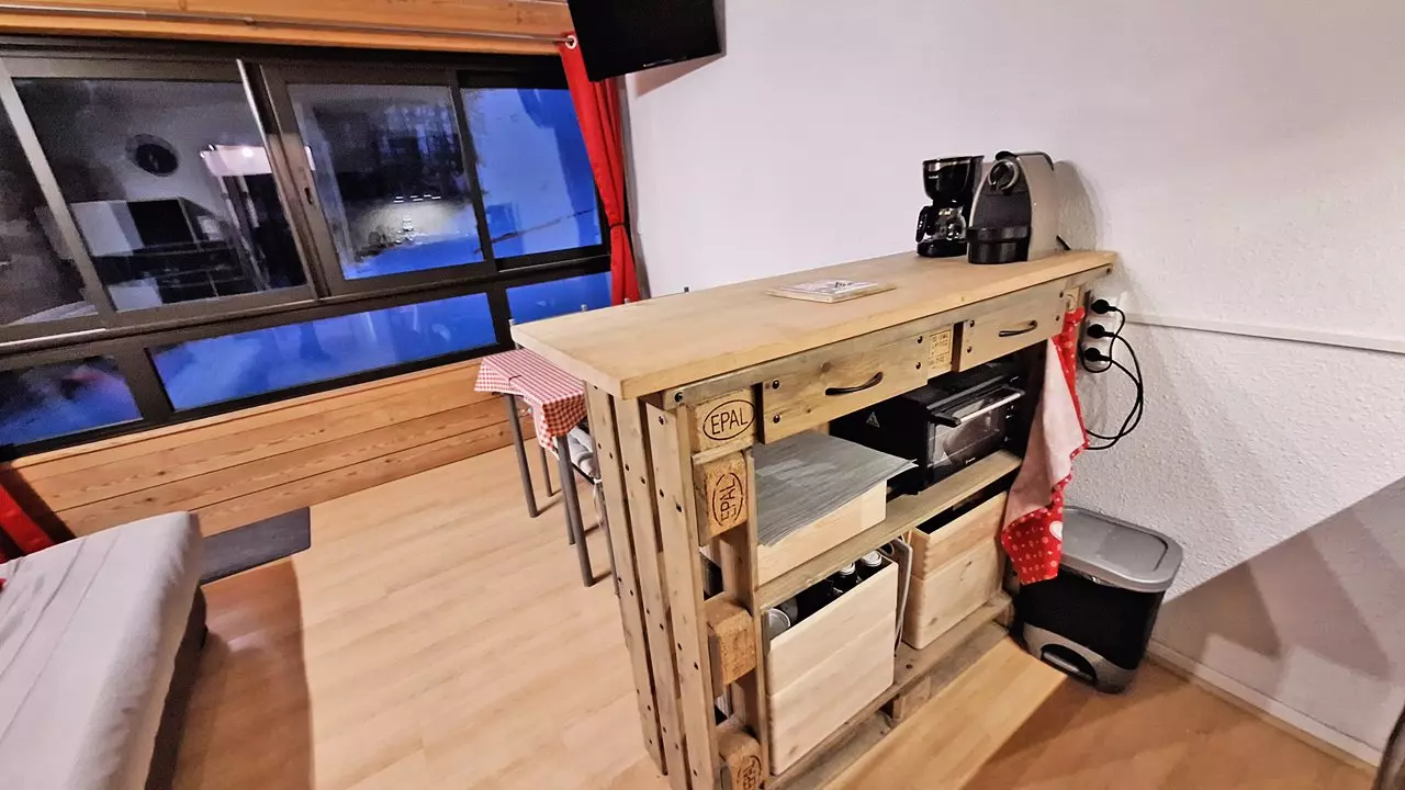 - This studio has an entrance with the mountain corner and bunk bed, with opposite, the bathroom with WC.