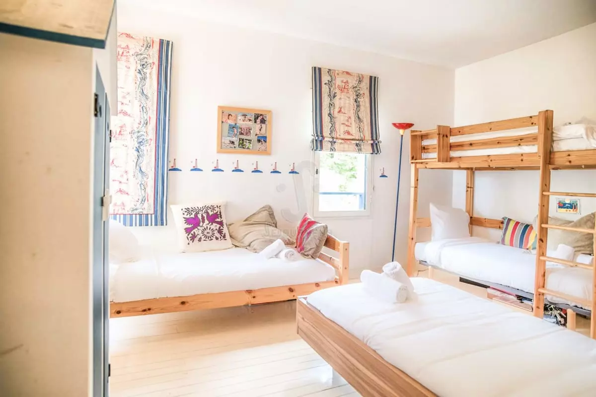 The house can accommodate up to 12 people, spread over 5 bedrooms, including a dormitory, and a bedroom with a space with a bunk bed just for children.
