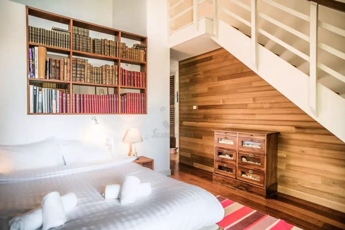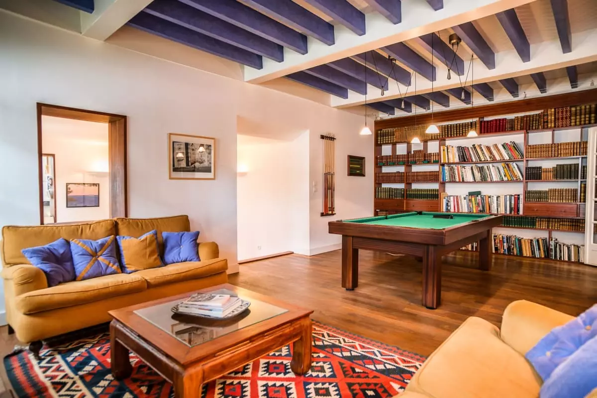 On the same landing you can enjoy a beautiful relaxation room with a reading lounge with a fireplace, a superb billiard table for fun as well as a majestic library where the owner lets you enjoy her incredible collection of books.