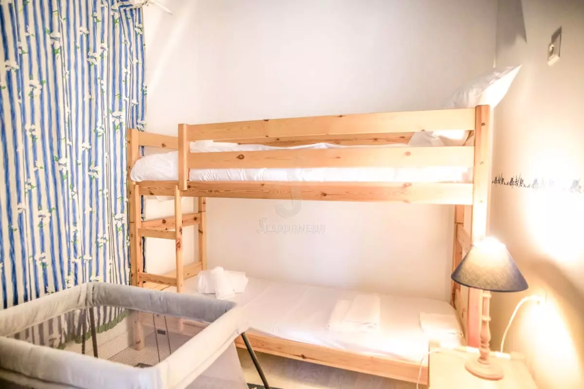 - 1 suite with a 140 cm bed, a children's dormitory area with a bunk bed, cupboards and a bathroom with WC to accommodate a family