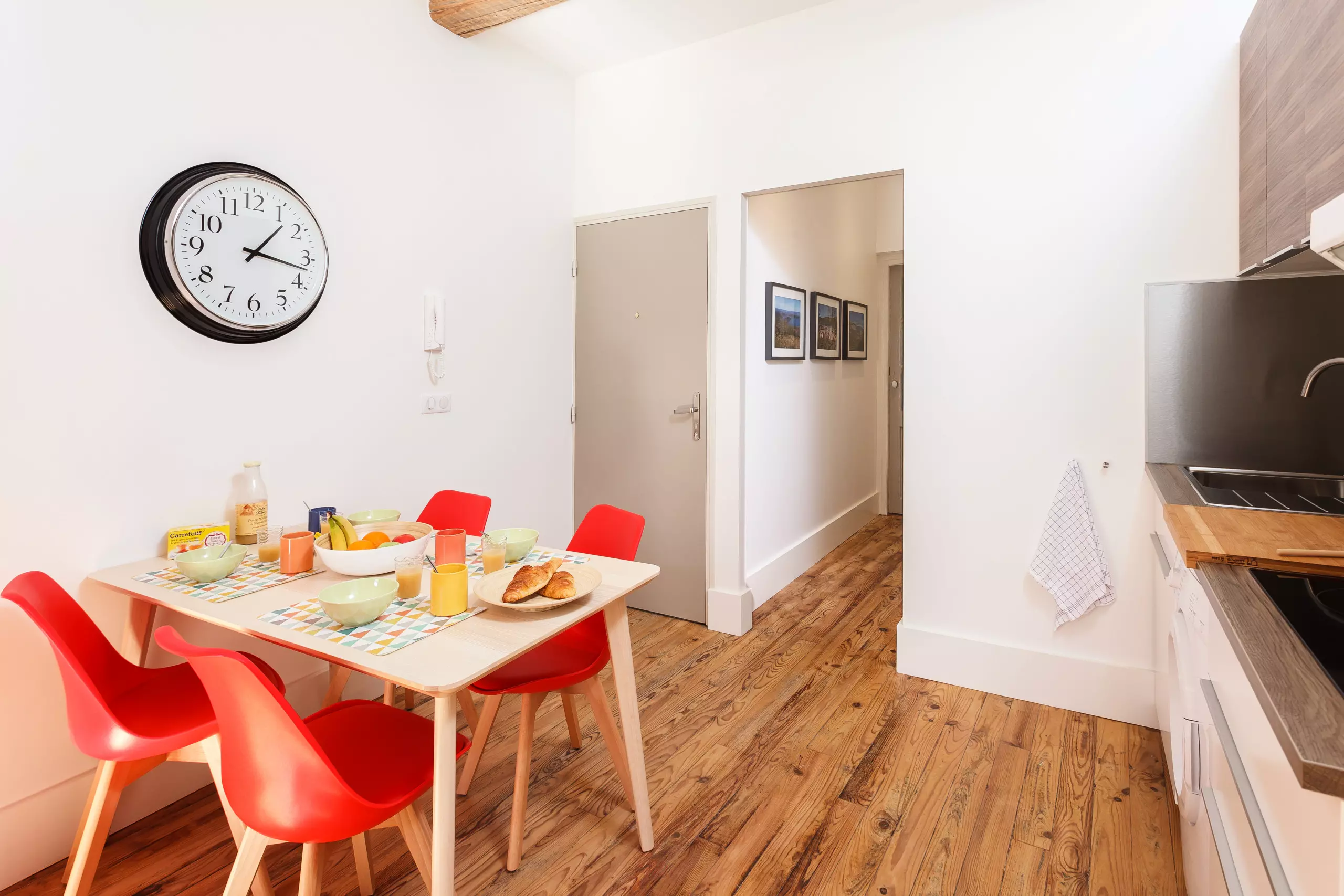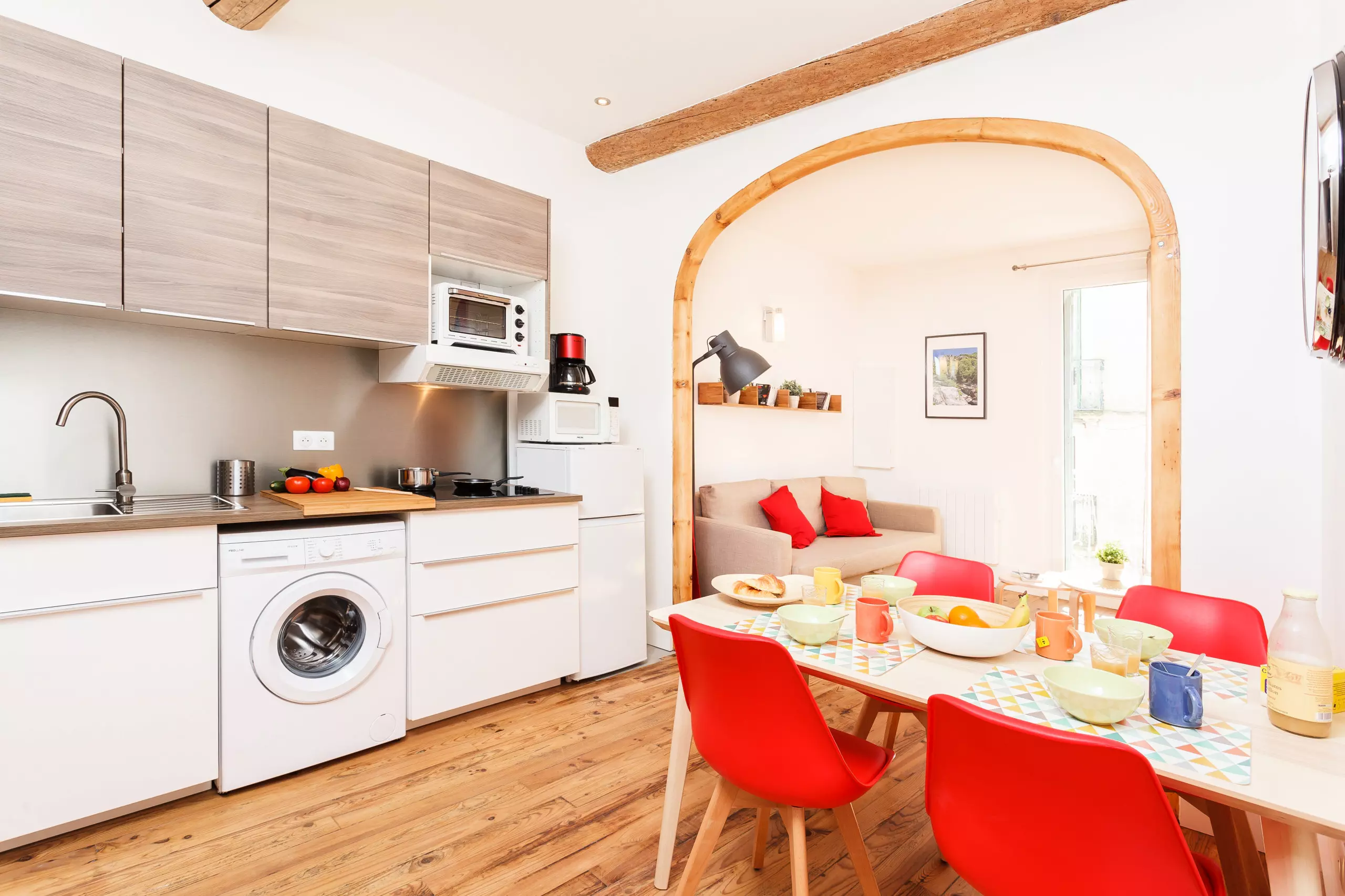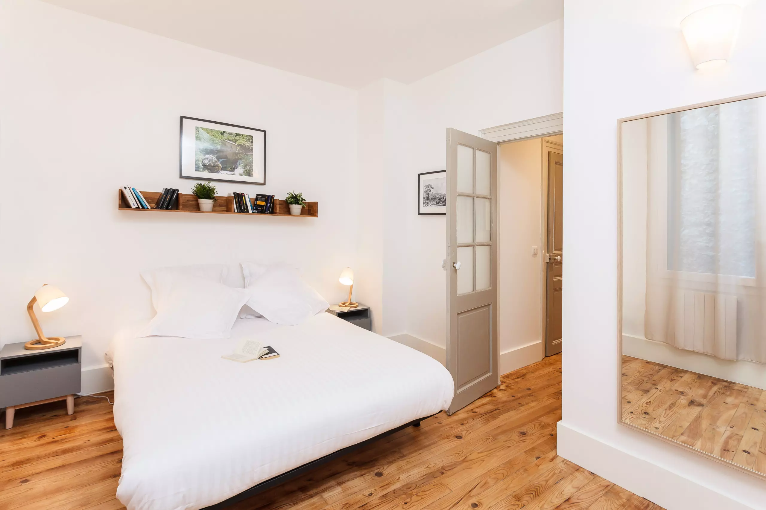 Bathed in the southern sun, this beautiful 44m² (470 sq ft) dual-aspect apartment is located on the floor of a quiet street. This charming property has undergone a high-end renovation. A large living room/kitchen, fully equipped with a refrigerator/freezer, microwave, oven, crockery, cutlery, and a kettle/coffee maker, is featured. A convertible sofa bed, flat-screen TV, high-speed internet, and Wi-Fi are also available. A large bedroom overlooks the quiet rear, complete with a small terrace for morning coffee. A shower/toilet is also available.