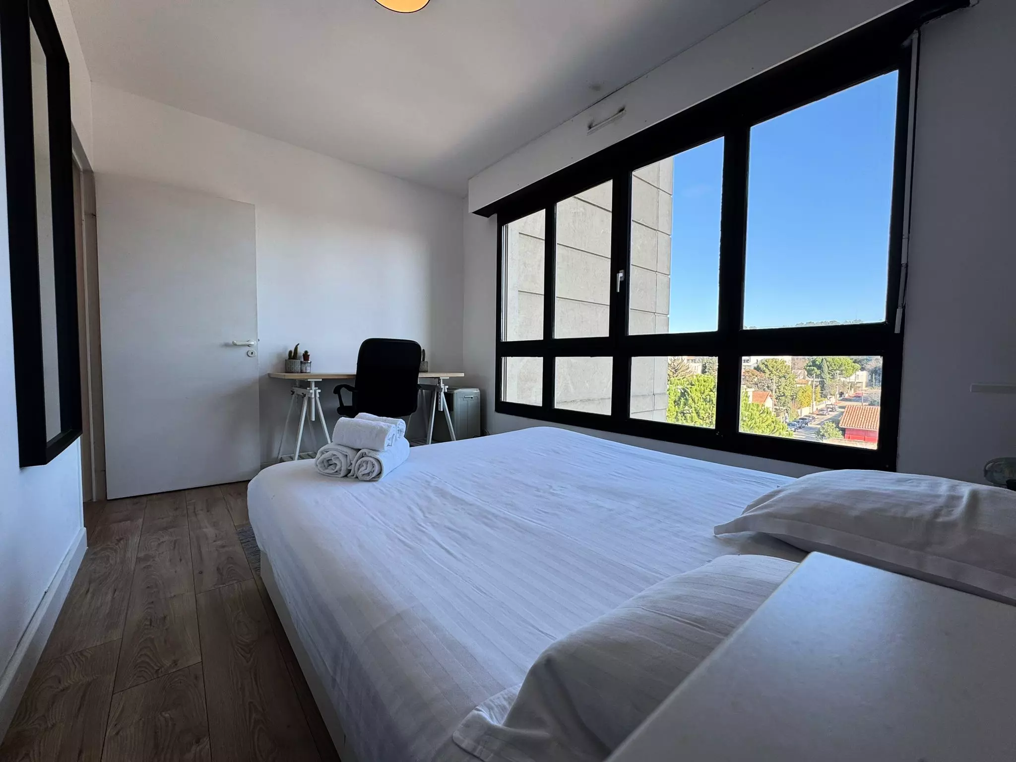 Apartment for 2 people. Beautiful apartment on the 3rd floor with elevator in a luxury residence in the heart of the Antigone district, a Greek Revival-style neighborhood entirely designed and signed by Ricardo Bofil. Beautiful volumes for this recently renovated 2-room apartment of 50 m² with two beds, with bathroom, separate toilet, fully equipped kitchen and TV. High-speed Internet. WIFI; Impeccable condition. Breathtaking view of the Place de l'Europe. Underground parking space on request. Historic center 10 minutes; Shops, Olympic swimming pool and tram station are just a stone's throw away. The beach is 15 minutes away. Immediate motorway access, St Roch SNCF train station 15 minutes by tram. A symbol of modernity and light, this neighborhood is atypical where antiquity and modernity rub shoulders on a daily basis. Montpellier residents love to stroll there, drink coffee and have lunch on one of its many terraces. Very well-located apartment in Montpellier in a number 1 district, a stone's throw from the Ecusson and a few minutes from the beaches. Ideally located at the entrance to Montpellier, this apartment allows for easy entry and exit into the city of Montpellier and allows its occupants to push the limits of travel, thus allowing them to visit a large area around the city, including the Camargue, the port of Sète, and the city of Nîmes, which are not far away...
