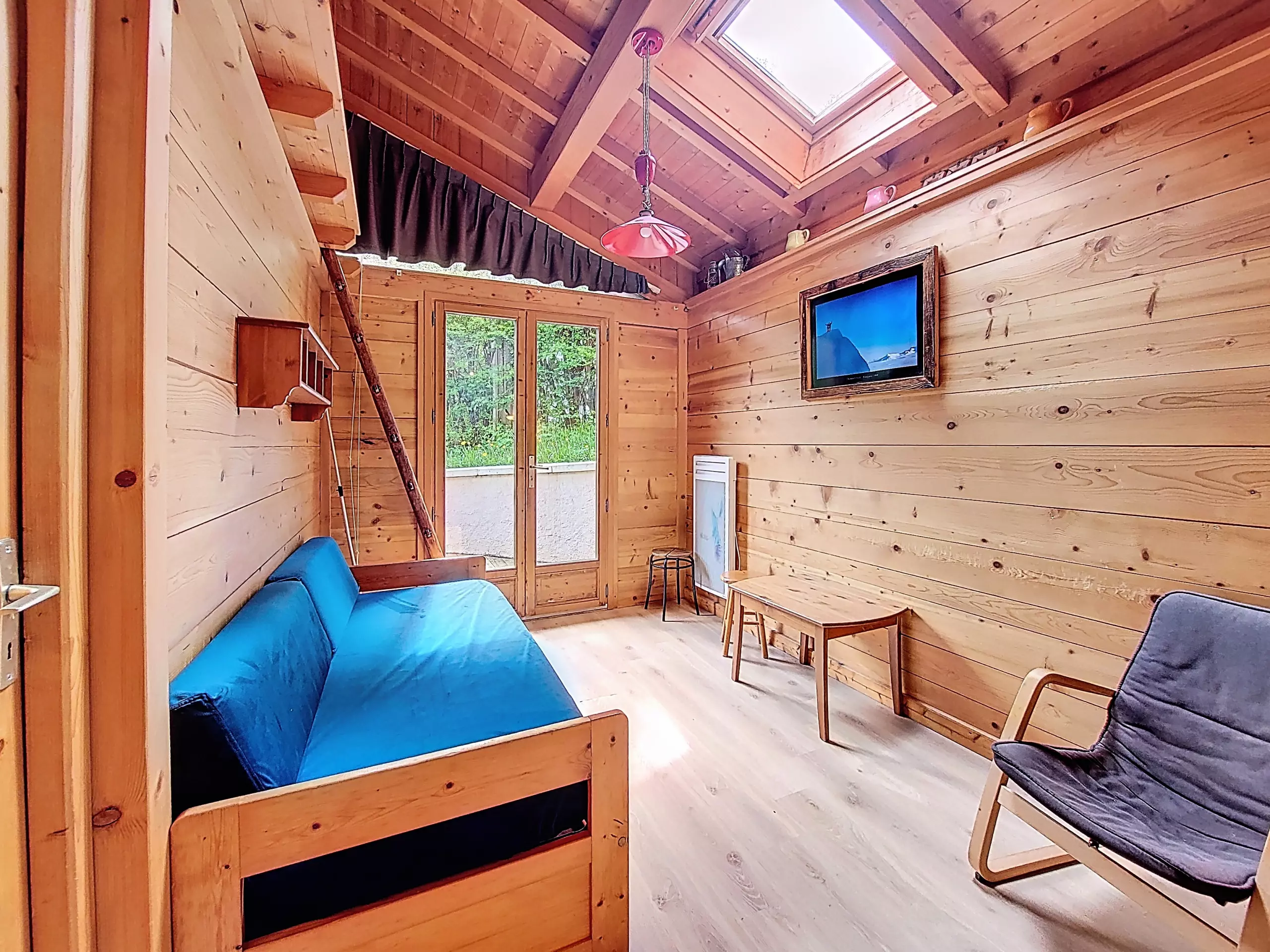 A living room with a pull-out sofa bed (sleeps 2: 90x190), a television and a DVD player