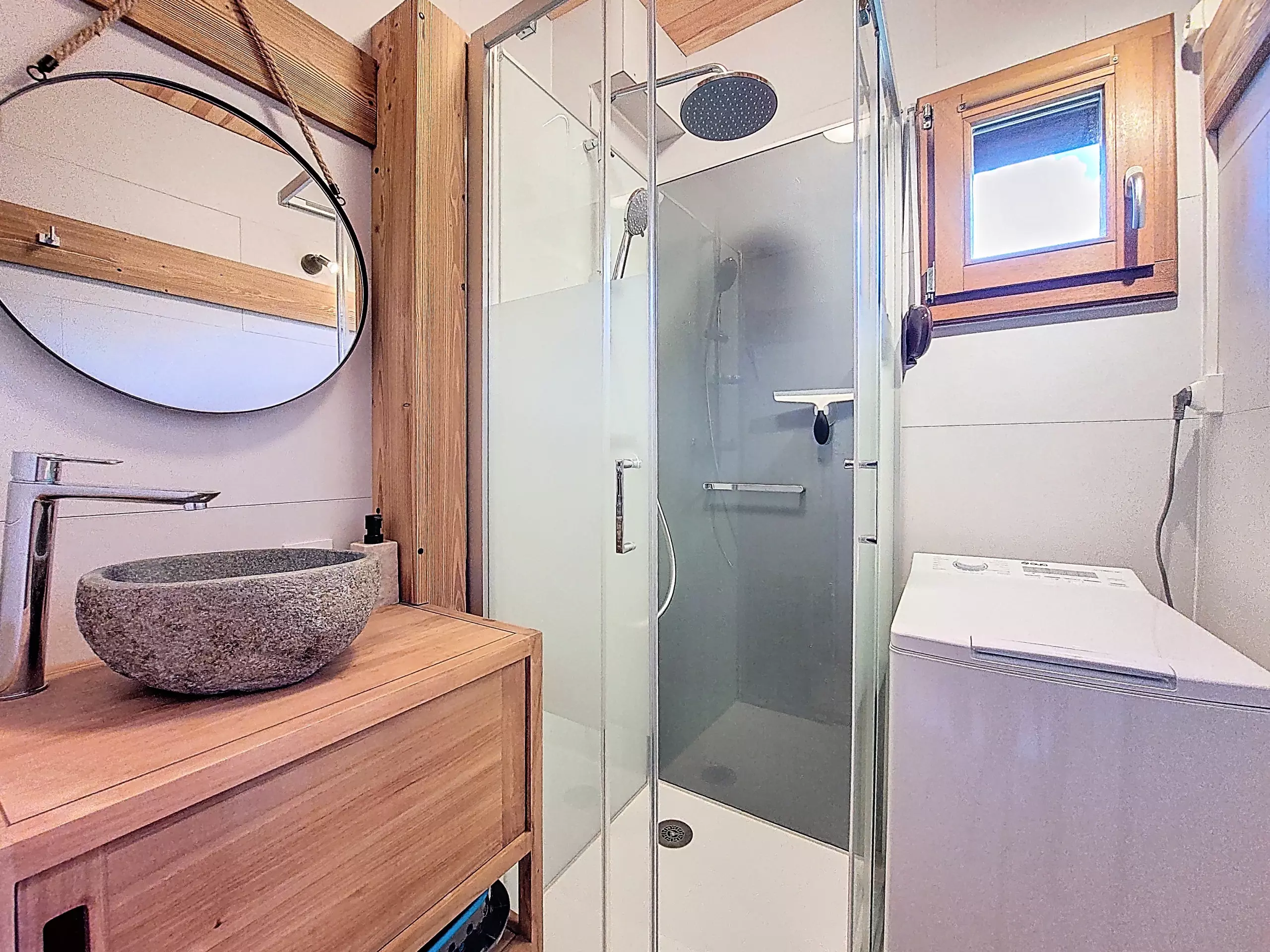 On the ground floor, a large garage serves as a ski and bike storage room for storing your equipment. There is also a water point for washing bikes in the summer.