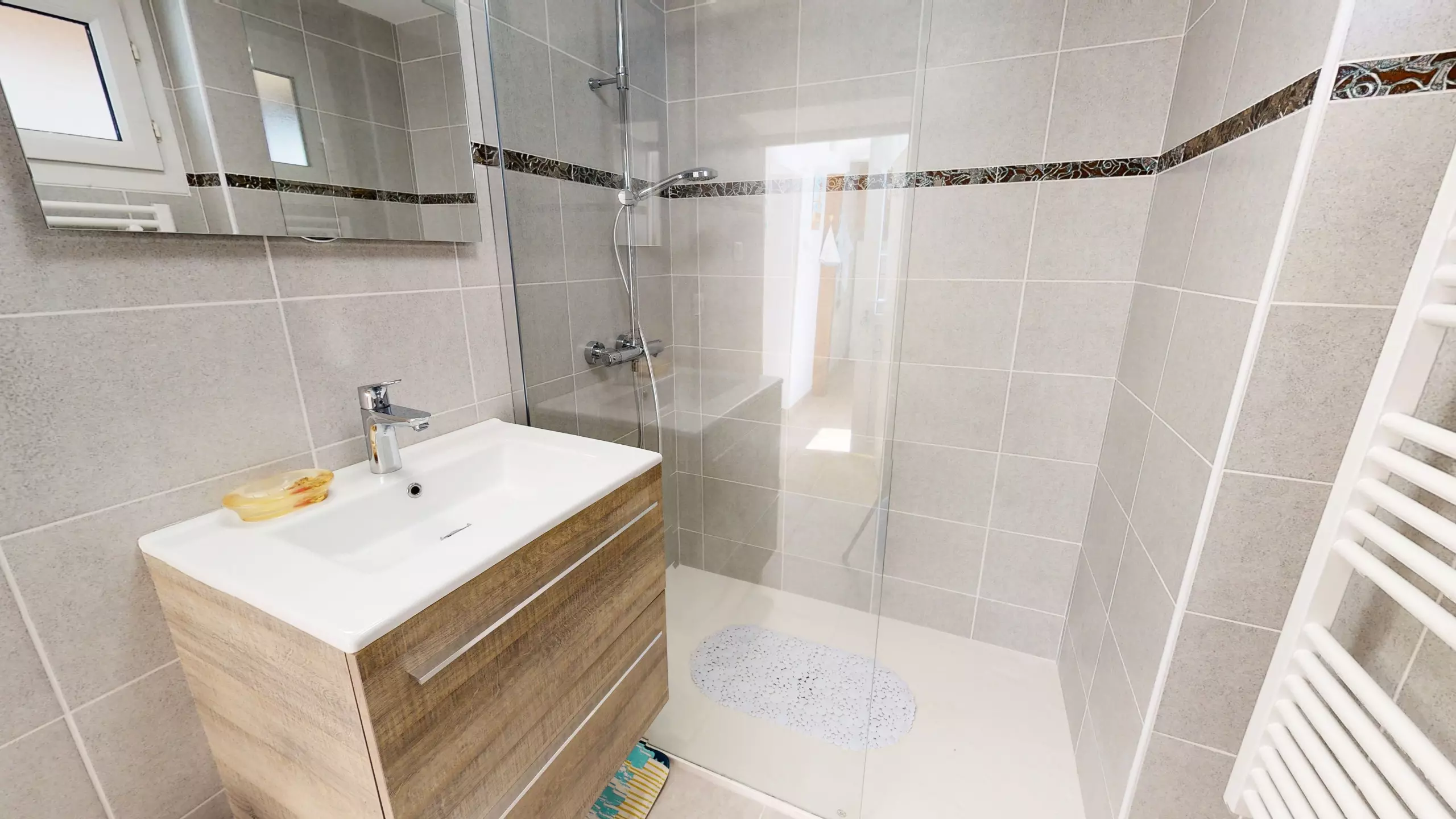 This welcoming 41 m² accommodation offers you an entrance to a beautiful living room with fireplace, a bedroom with a 140 cm bed, a 2nd with a 140 cm bed, a bathroom with shower, kitchen giving access to a south-facing terrace.