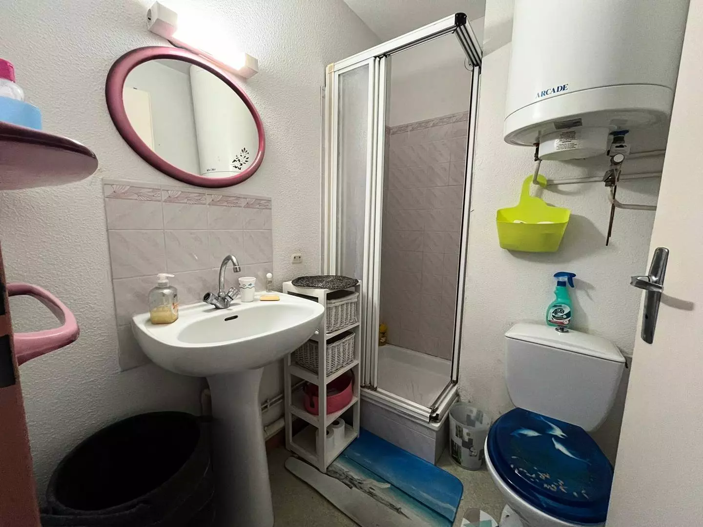 Shower room with shower and toilet.