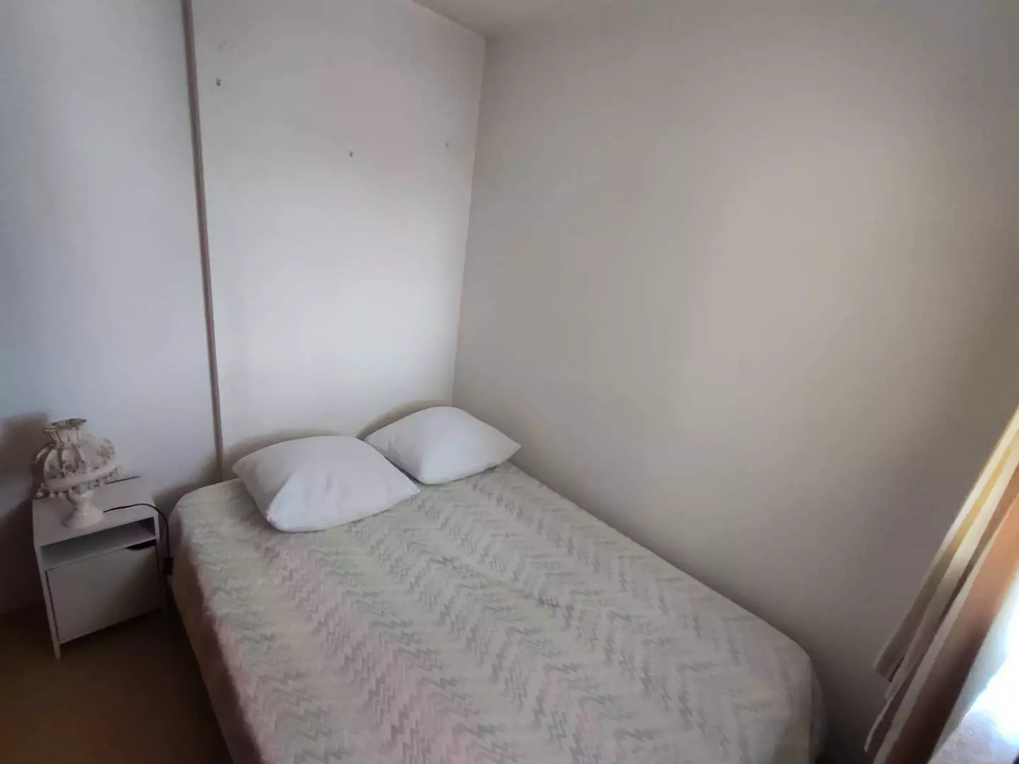 A bedroom with a 140cm double bed, a bathroom with shower and toilet. An enclosed loggia with a dining area. Private parking space.