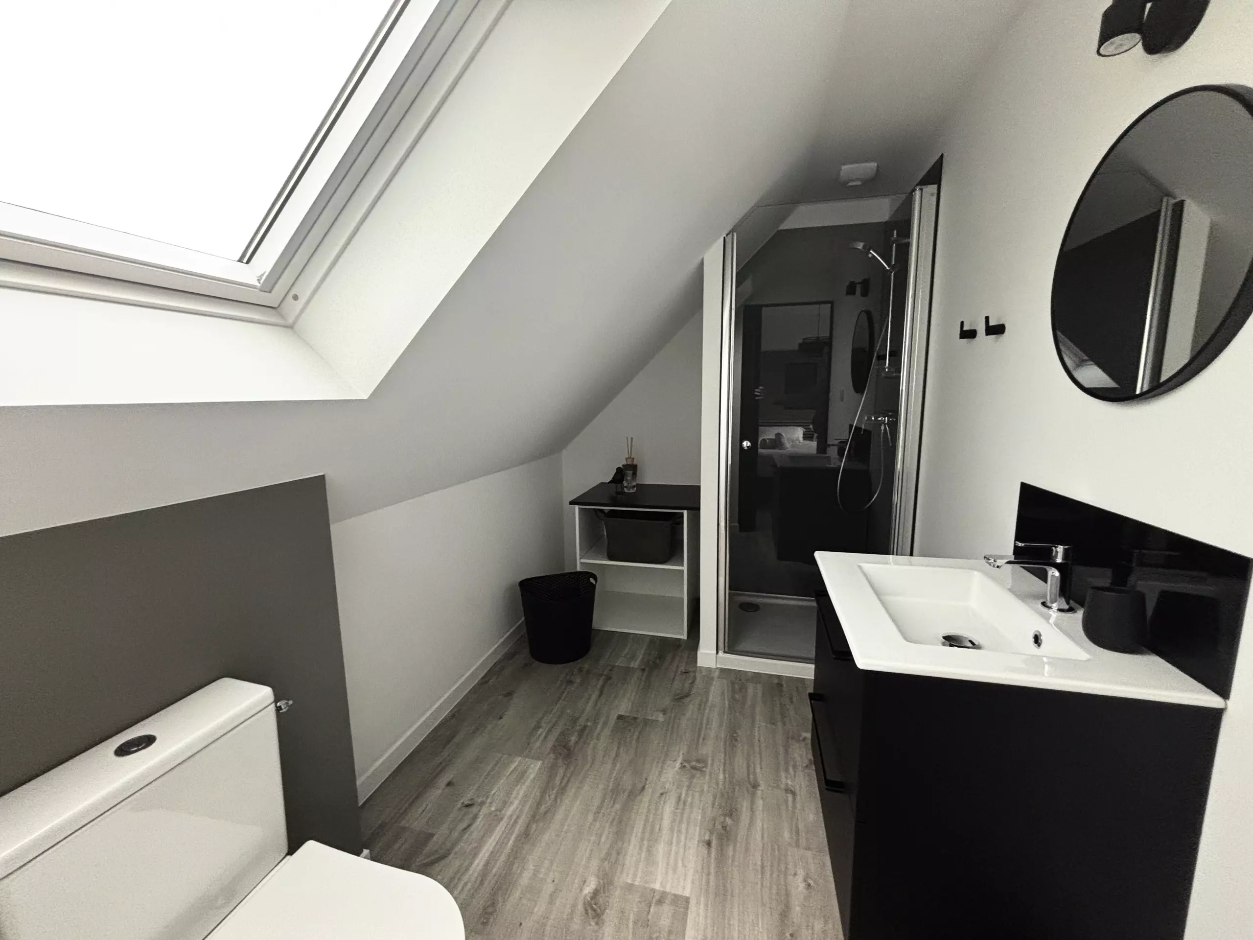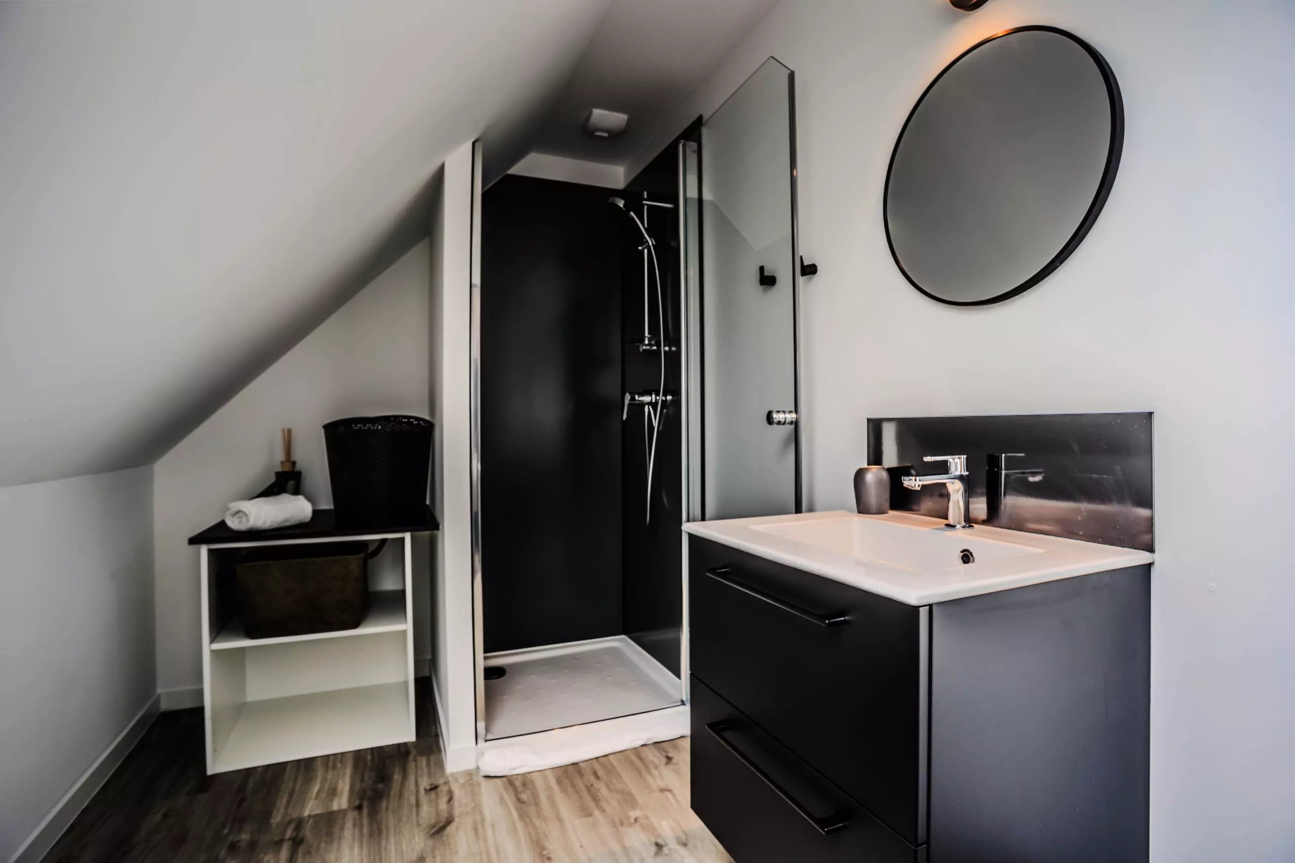 - Bedroom 2 (upstairs): 2 single beds of 80 cm (possibility of making a double bed of 160 cm with a comfortable mattress topper provided). Private shower room and toilet.