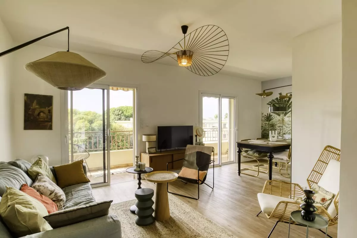 The very pleasant apartment is dual-aspect, so you will have 2 large balconies equipped with awnings, for having your meals or relaxing.