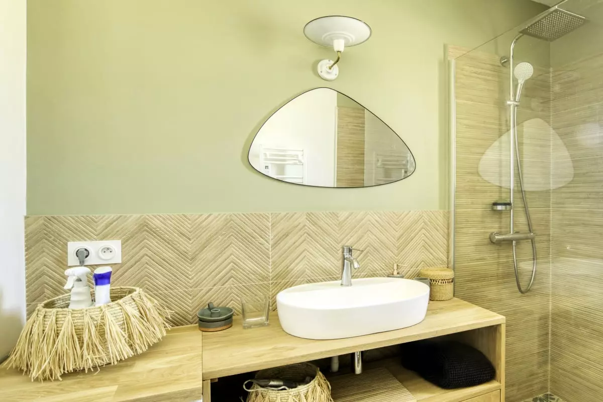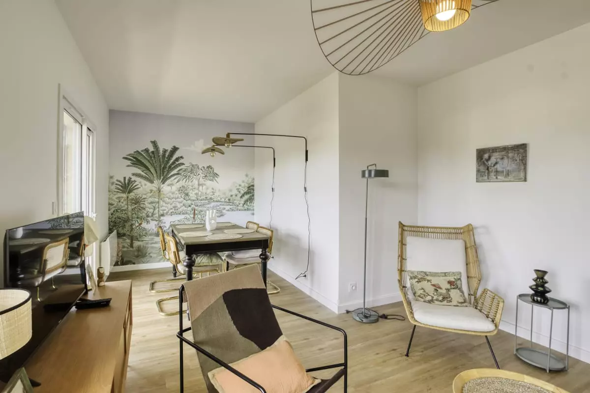 Able to accommodate 4 people, the 60 m2 accommodation is calm and bright and comprises: