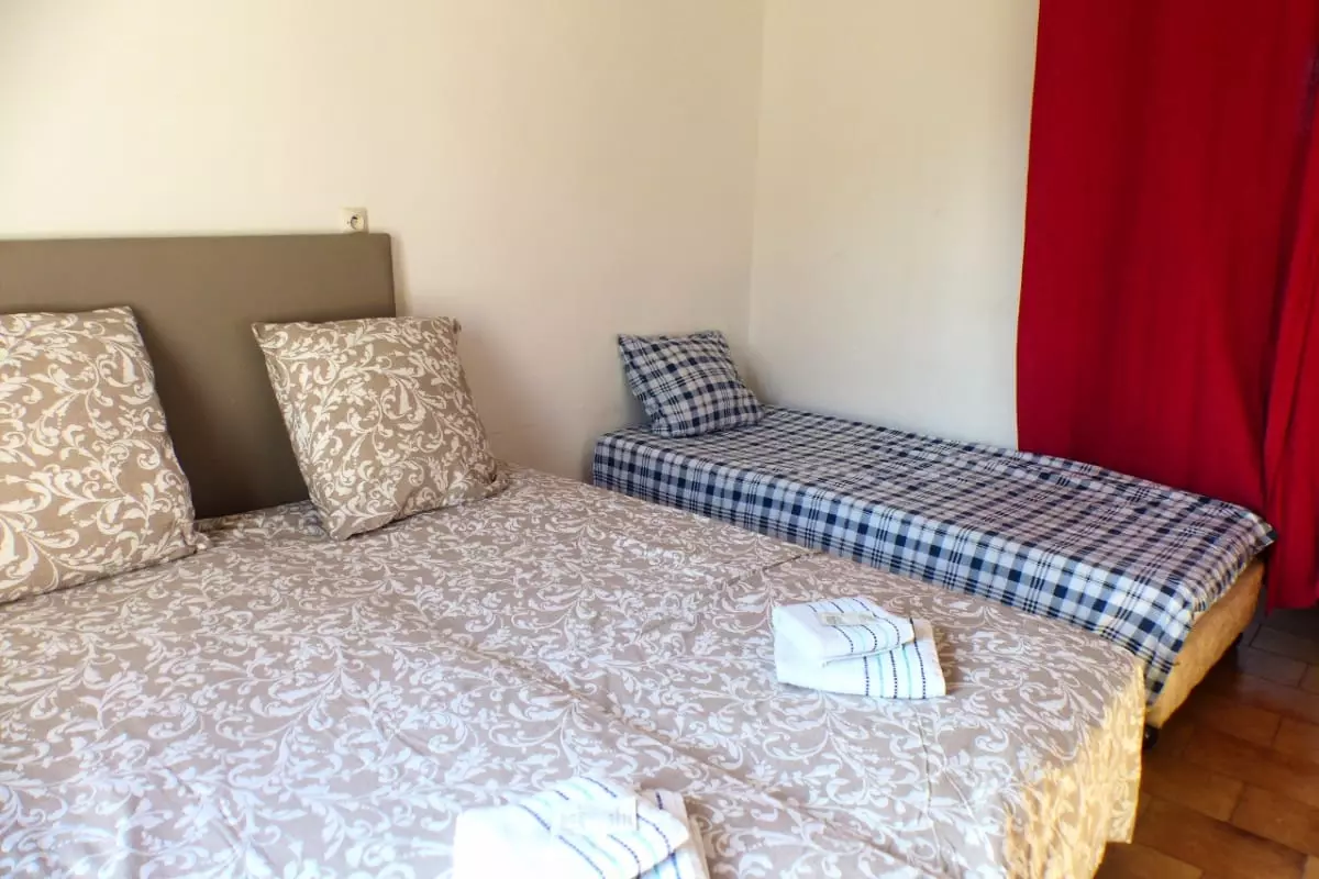- three bedrooms with two double beds and four single beds;