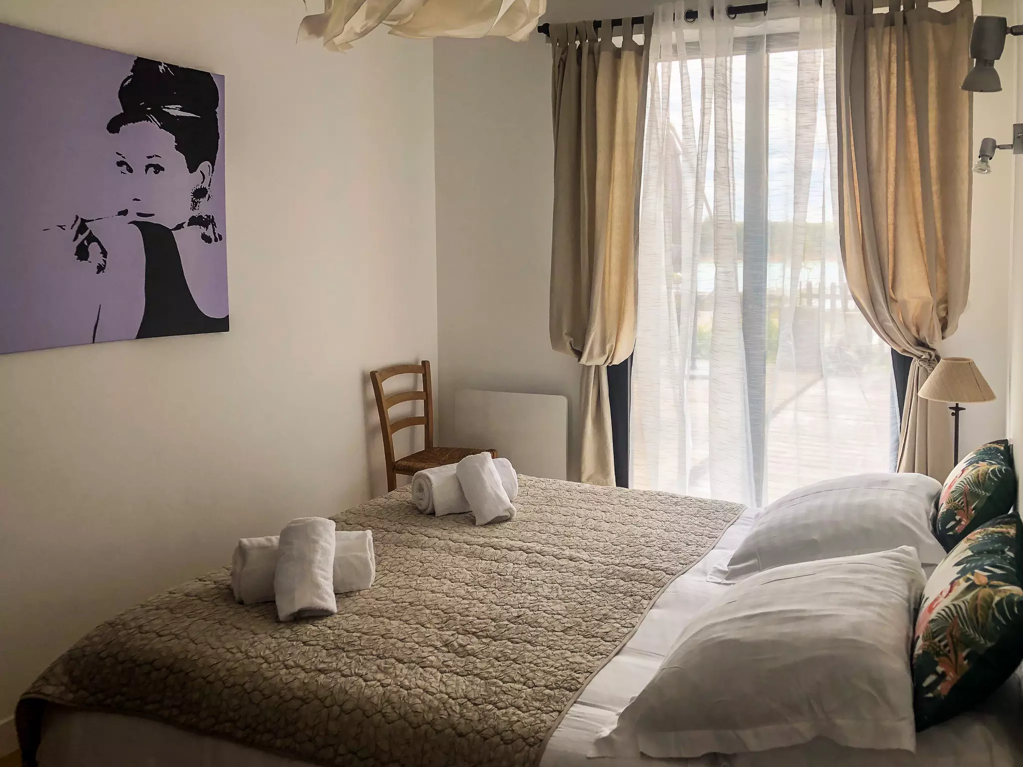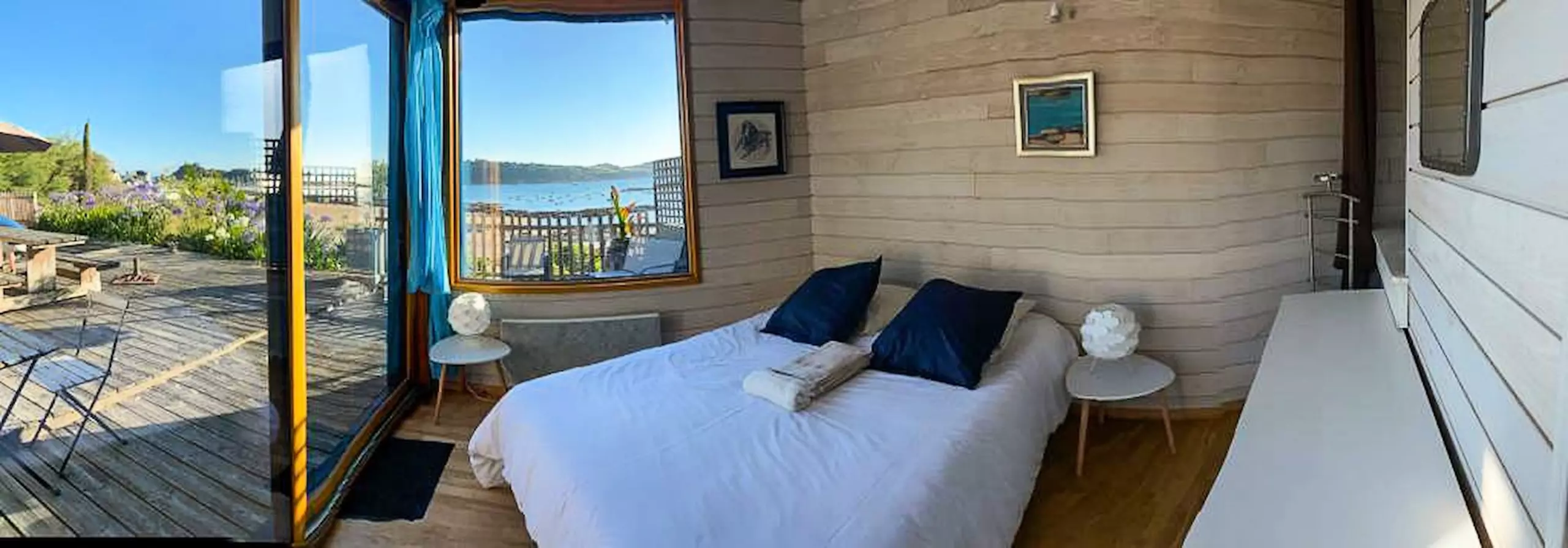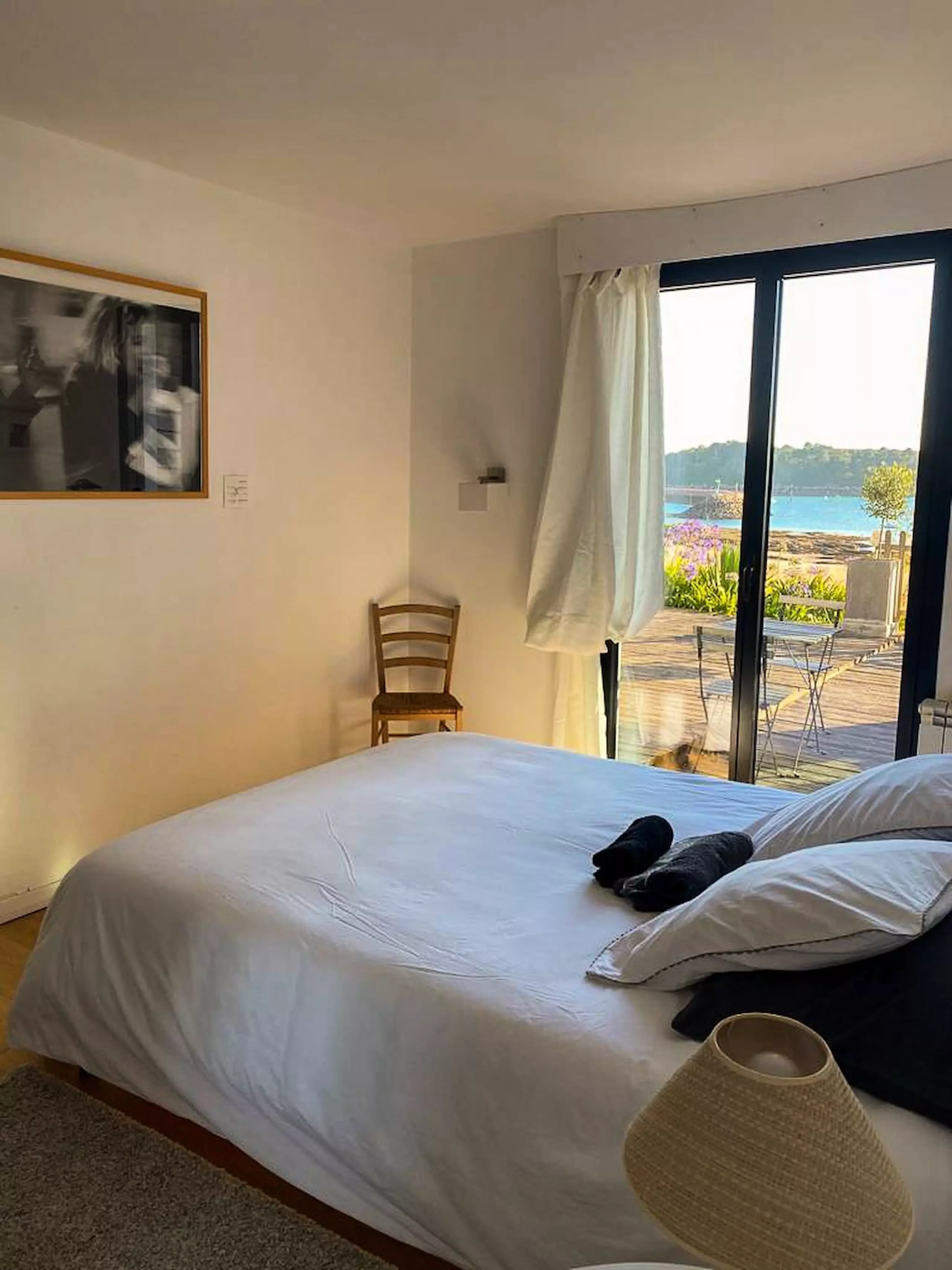 - Bedroom 1 (ground floor): 1 bed 160 cm, bay window opening onto the terrace, very pretty sea view.