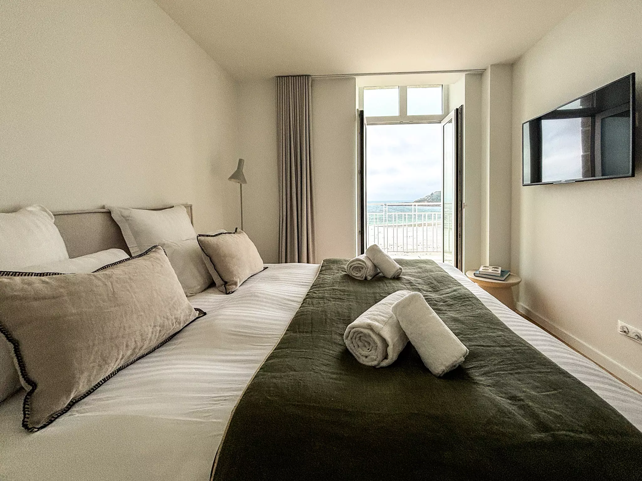 - Bedroom 1: 1 double bed 140 cm with sea view and balcony (exceptional).