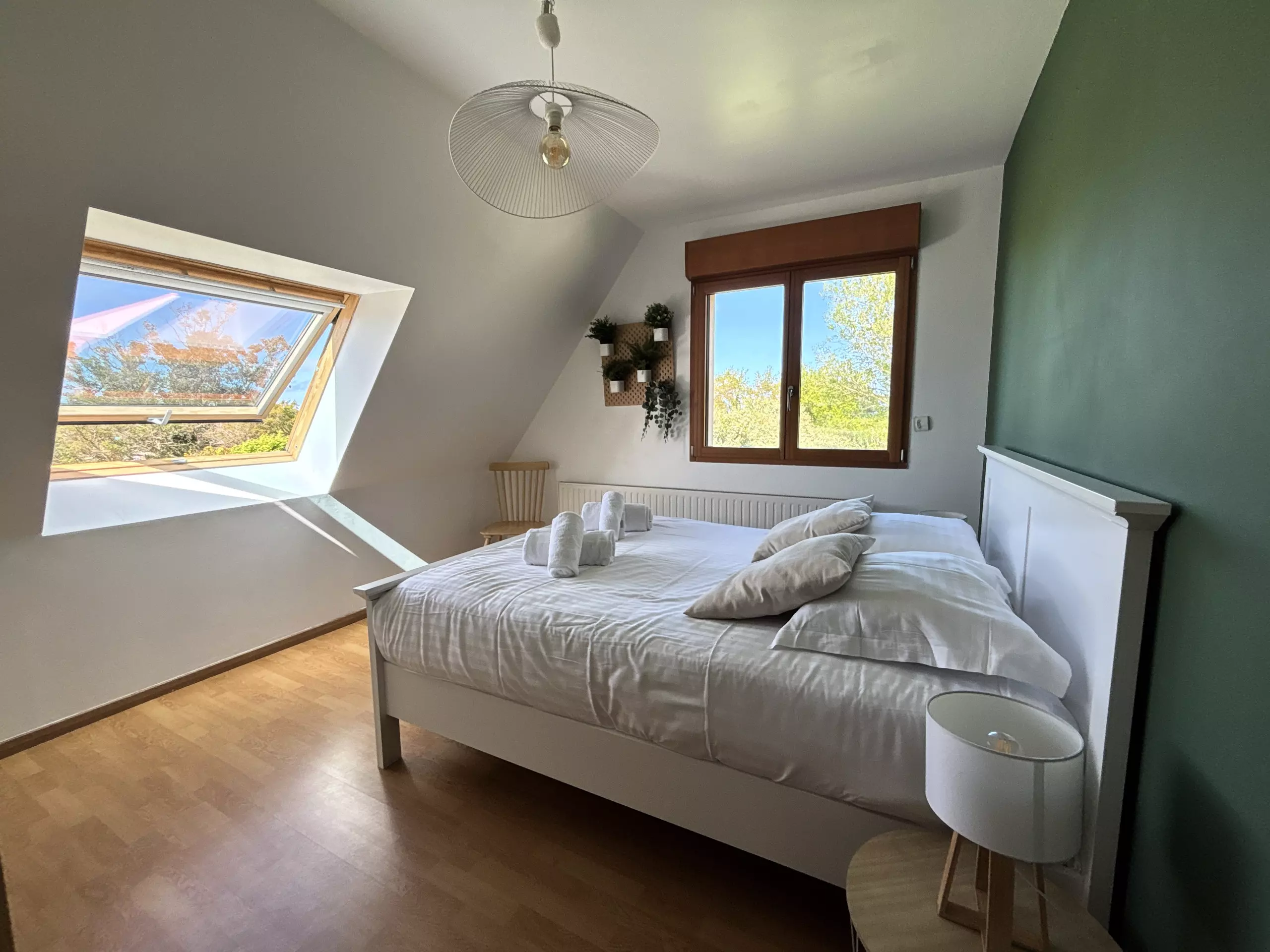 - Bedroom 1 (ground floor): 1 bed 160 cm and 1 bed 190 cm with its bathroom and desk.