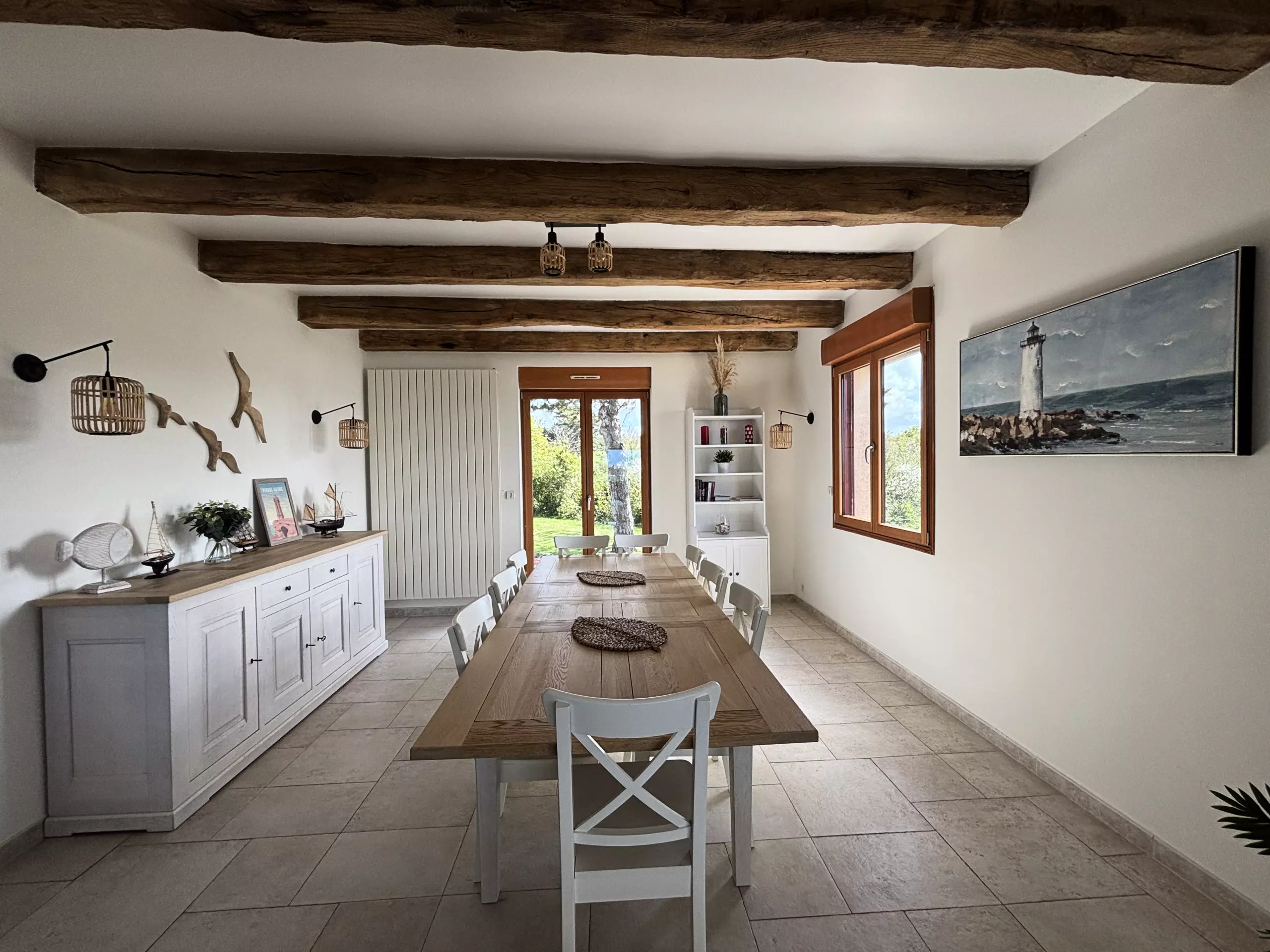 This villa, with its refined decor, offers space and light. The open and comfortable living areas open onto a spacious terrace that promises relaxation and relaxation against the blue horizon and the sound of the waves.