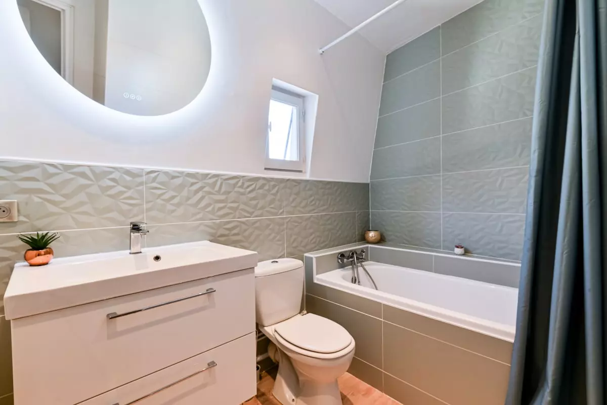 - Upstairs: 2 bedrooms with double beds and 2 bathrooms (including 1 with bathtub)