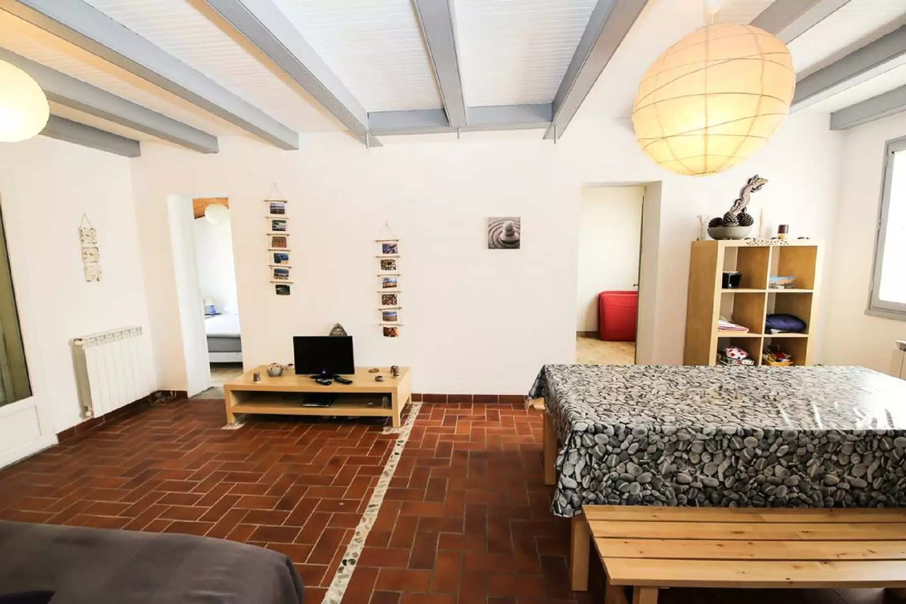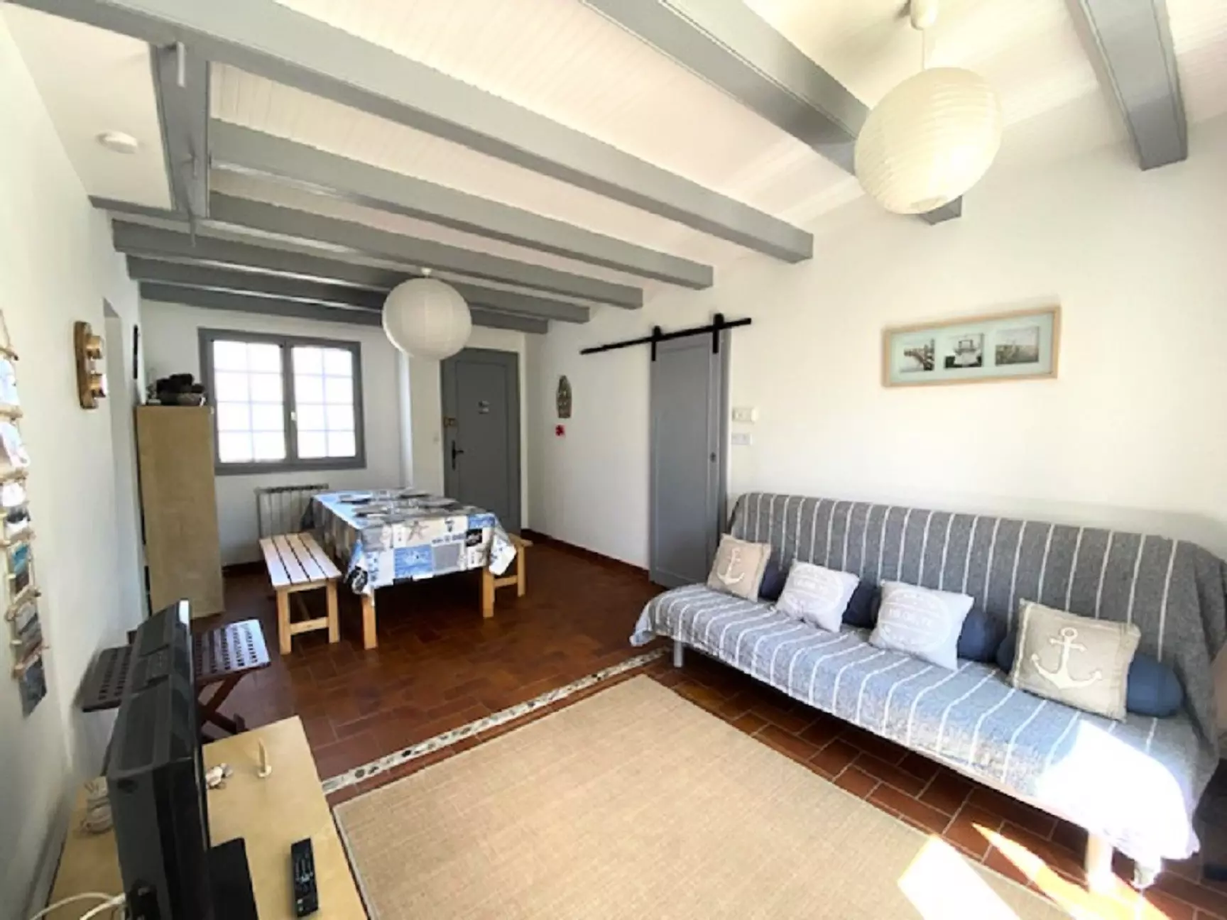* Living room/Living room: (21m²): sofa, flat screen TV, table with two whites. * Fitted and equipped kitchen: refrigerator/freezer, electric oven, induction hob, microwave, dishwasher. * Bedroom 1 (10.80m²): 2 beds 90x 200. * Bedroom 2 (8.10m²): 1 double bed 140x200 Bedroom 3 (9m²) 140x190. * Fitted bathroom: sink and shower * Separate WC * Laundry room with washing machine. Enclosed terrace with garden furniture, barbecue, deckchair. You will find all the equipment necessary for your comfort. Free WIFI ACCESS