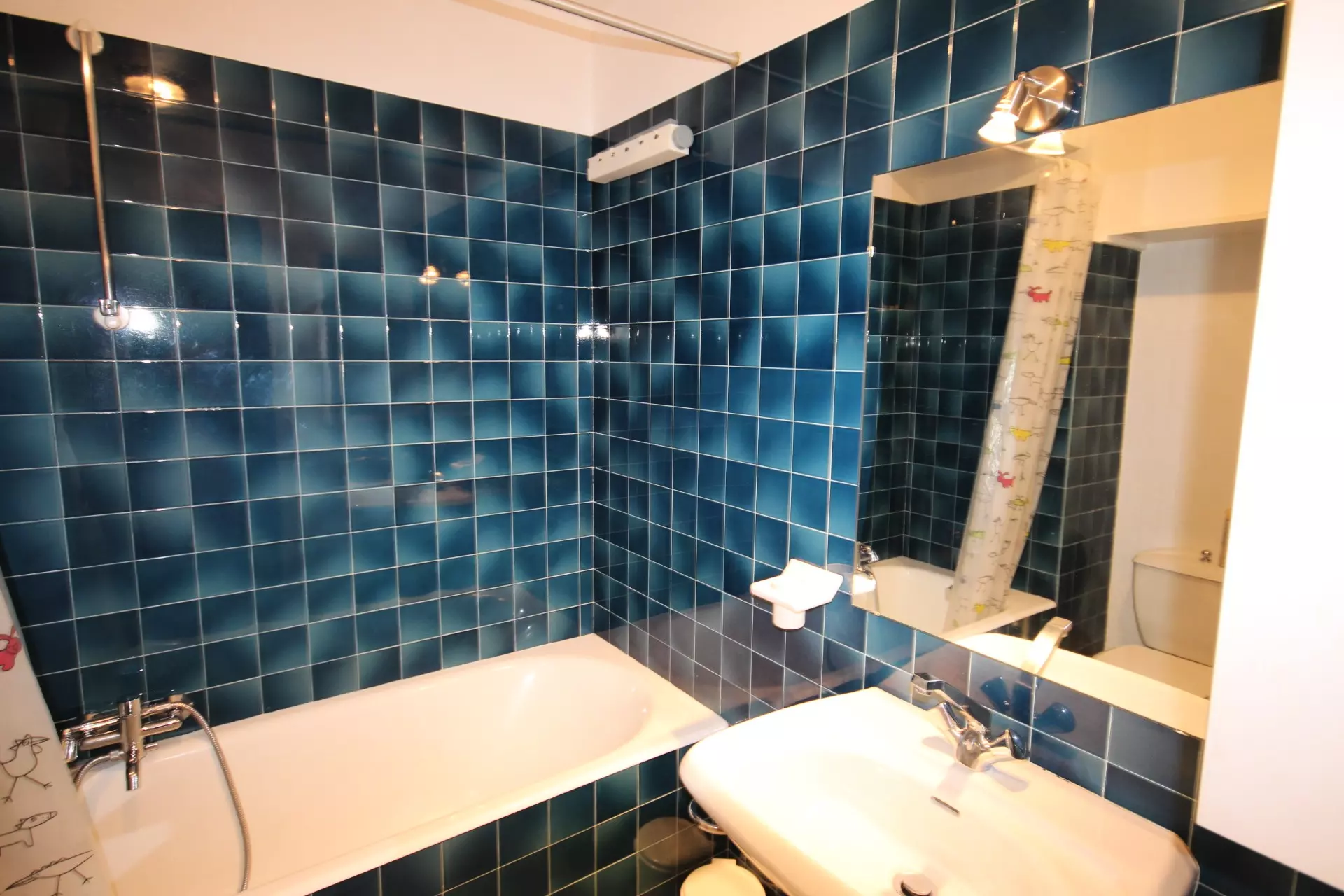 - 1 Bathroom with bathtub, sink and WC
