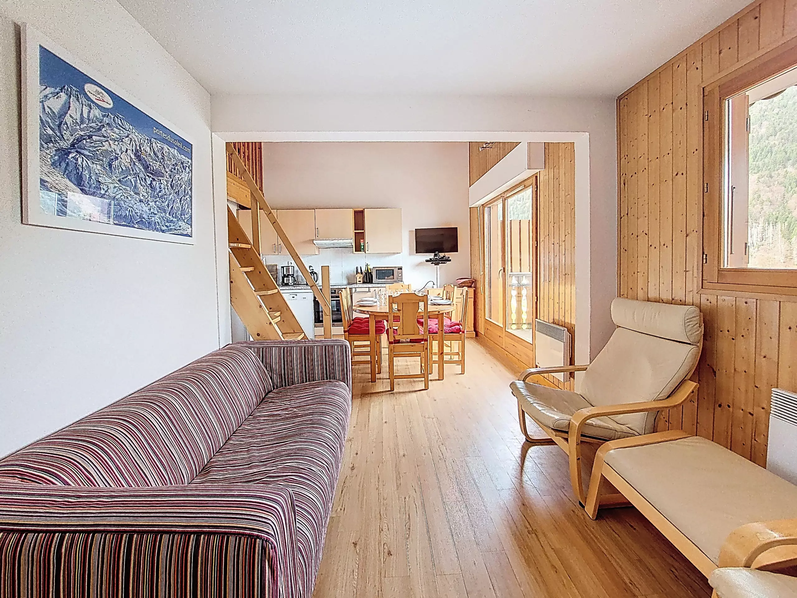 - 1 French window in the kitchen giving access to the west-facing balcony with a view of the ski slopes