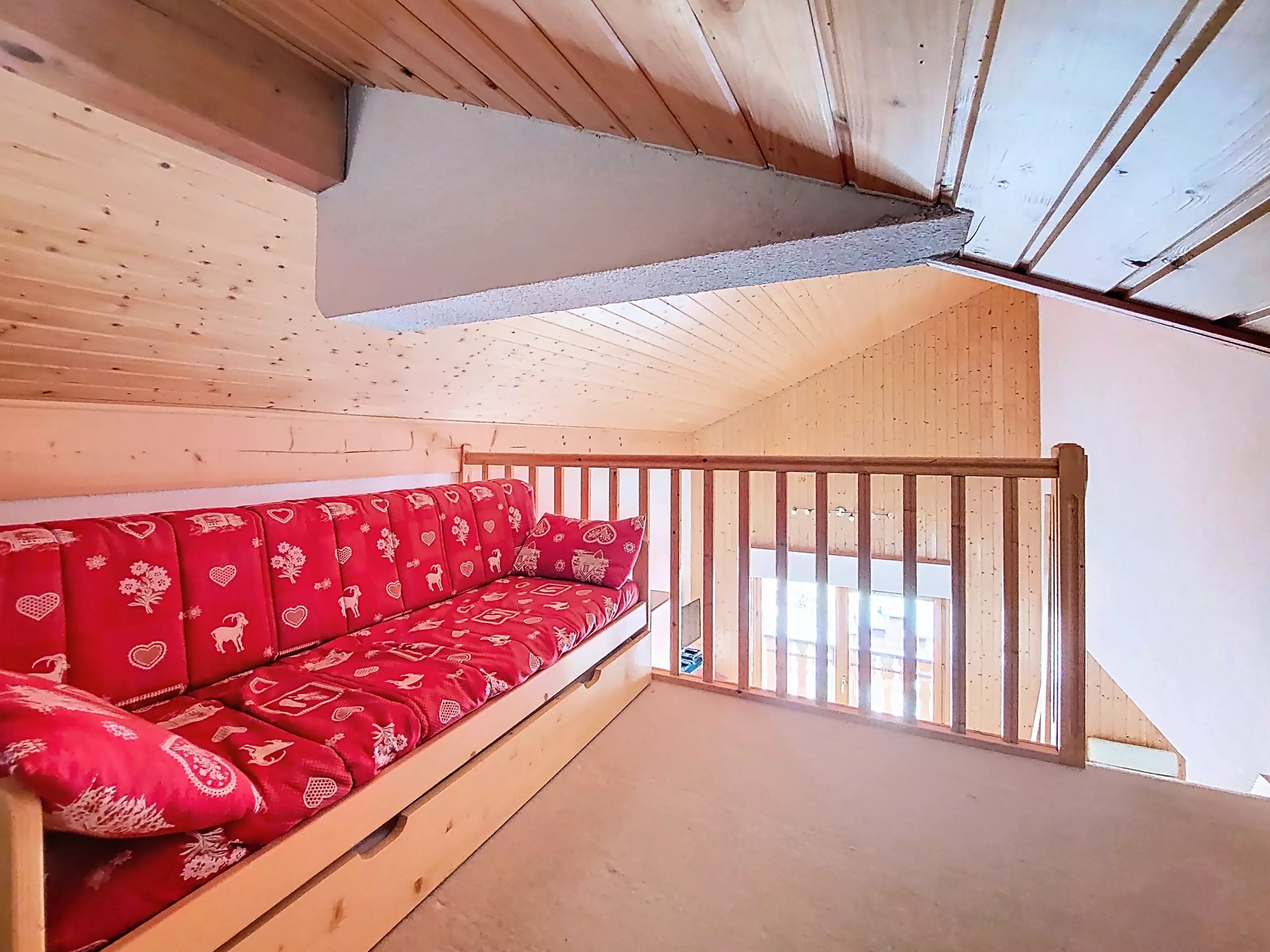 - 1 attic mezzanine with a pull-out sofa bed (90 x 190 cm)