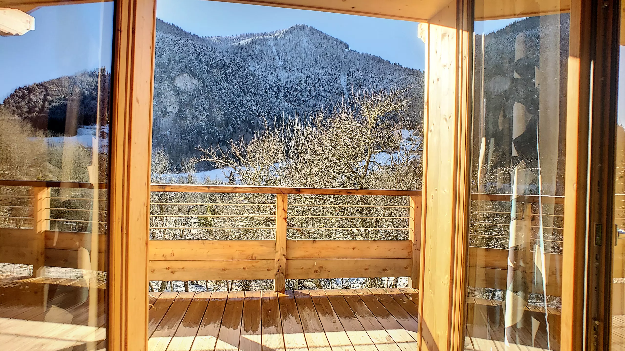 French doors giving access to the terrace with breathtaking views of the mountains and the valley. Southwest exposure with valley view