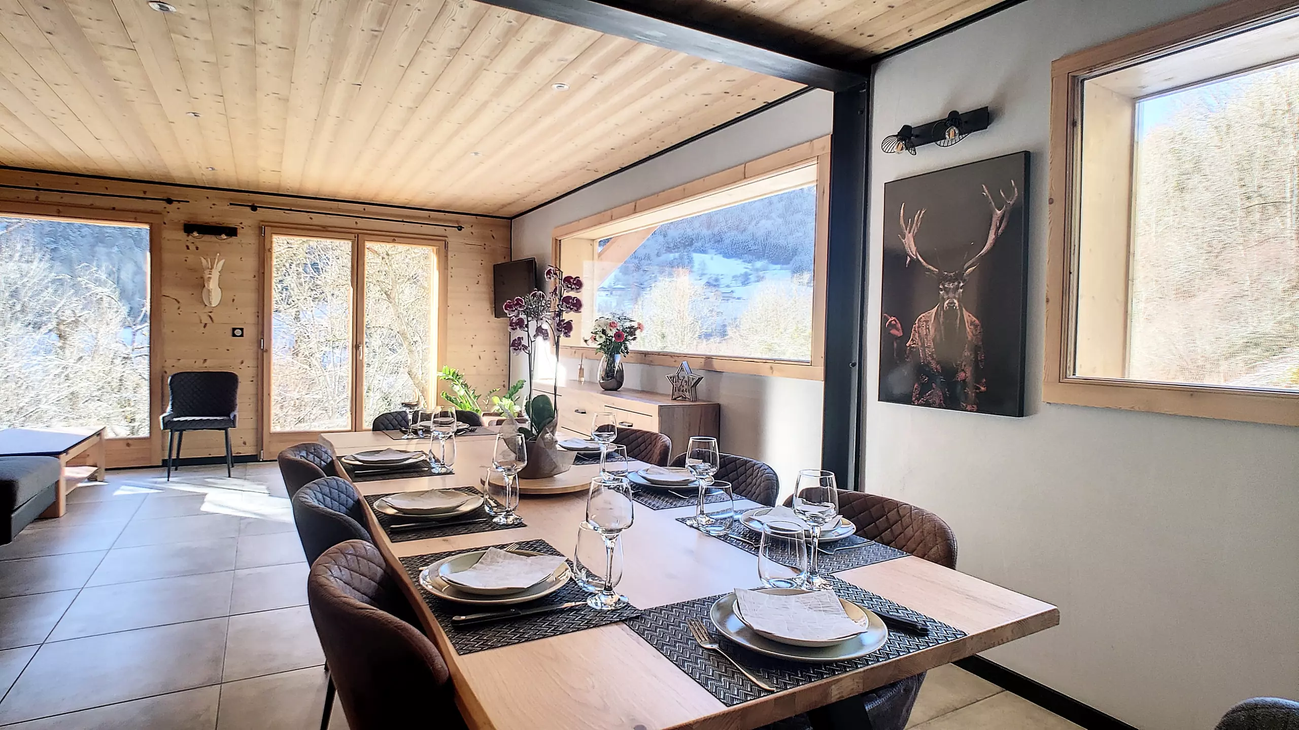 This brand new and spacious 3-story chalet boasts exceptional views of the valley. The tastefully furnished space blends mountain spirit with modern touches, creating a warm and welcoming environment.