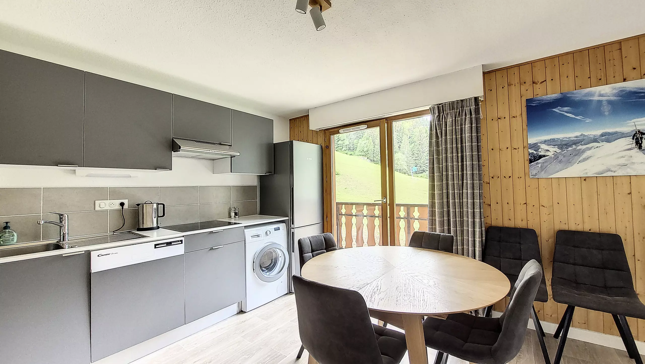 Located at the very top of the Roc d'Enfer resort, access to the slopes is direct on skis, superb view, unobstructed on the mountains and the ski slopes, this pretty apartment is brand new and very functional, spacious and comfortable