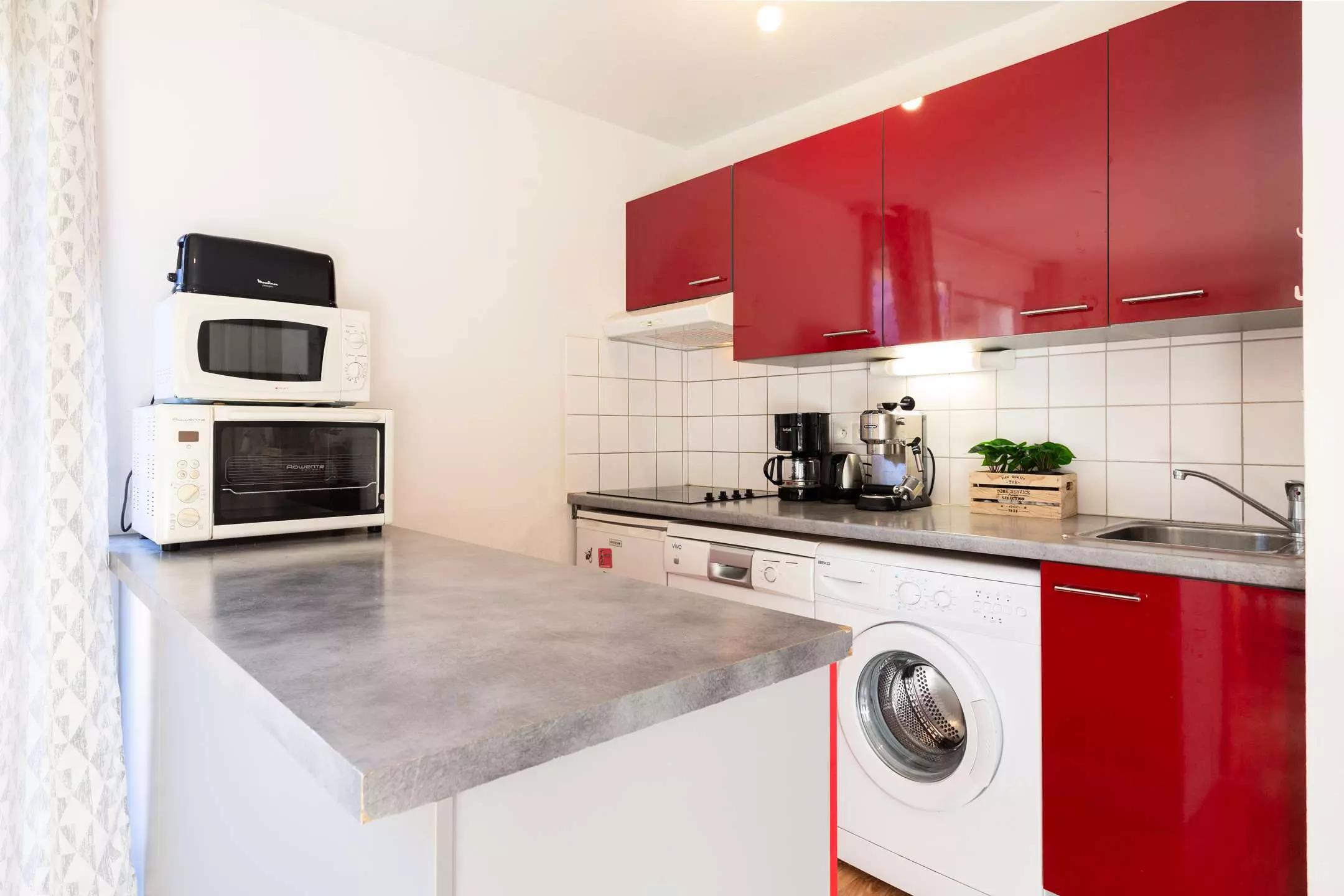 Including: Entrance - Living room with sofa bed, television - fitted kitchen with electric oven + microwave + dishwasher washing machine