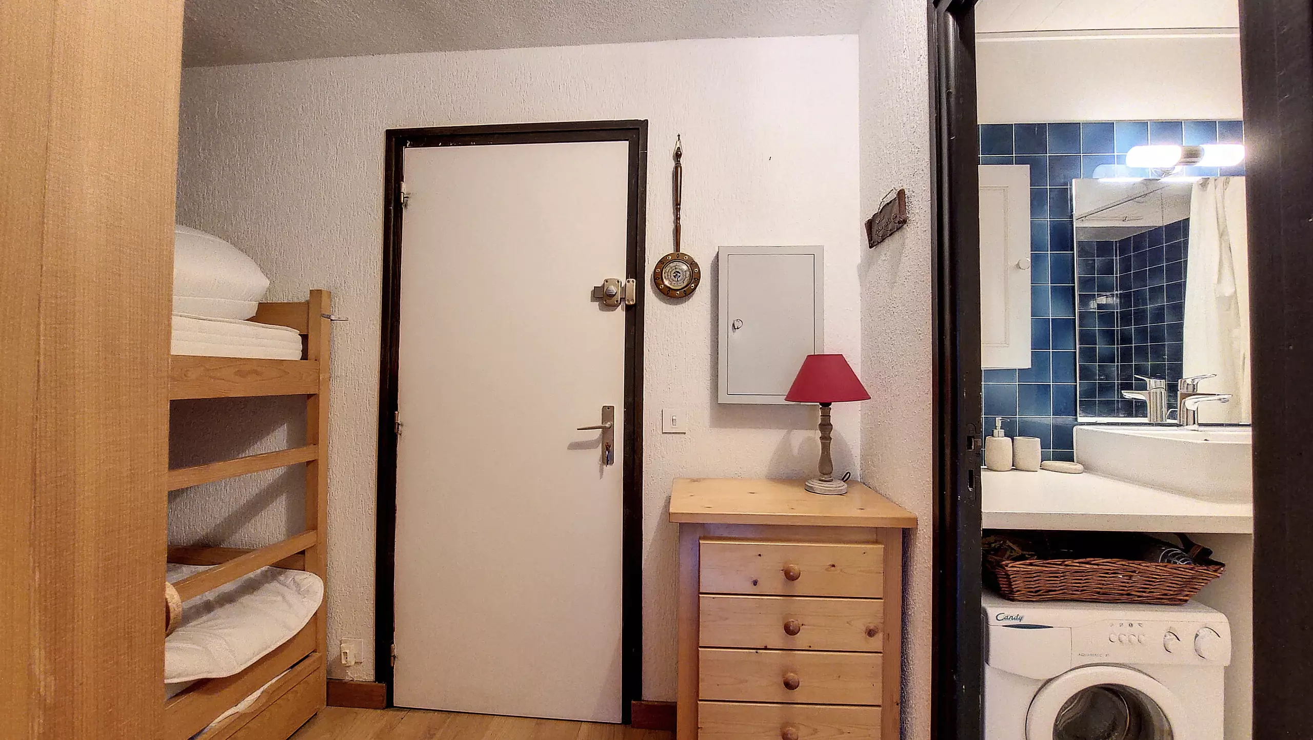- 1 Entrance with mountain corner with 1 bunk bed (90 x 190 cm) and storage cupboard