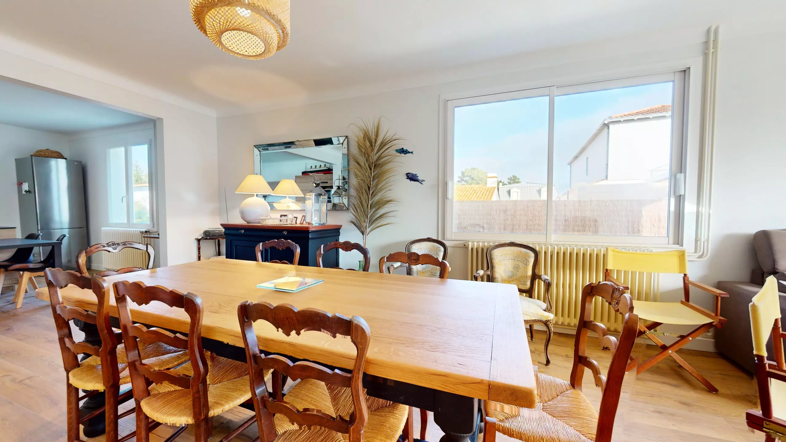 Spacious and modern, this villa welcomes you into a warm and elegant atmosphere. With its three carefully decorated bedrooms, each space is designed for your comfort. The bedding is new and high-quality, including two bedrooms with king-size beds (180 cm) and a bedroom perfect for children with three single beds (convertible into a double bed).