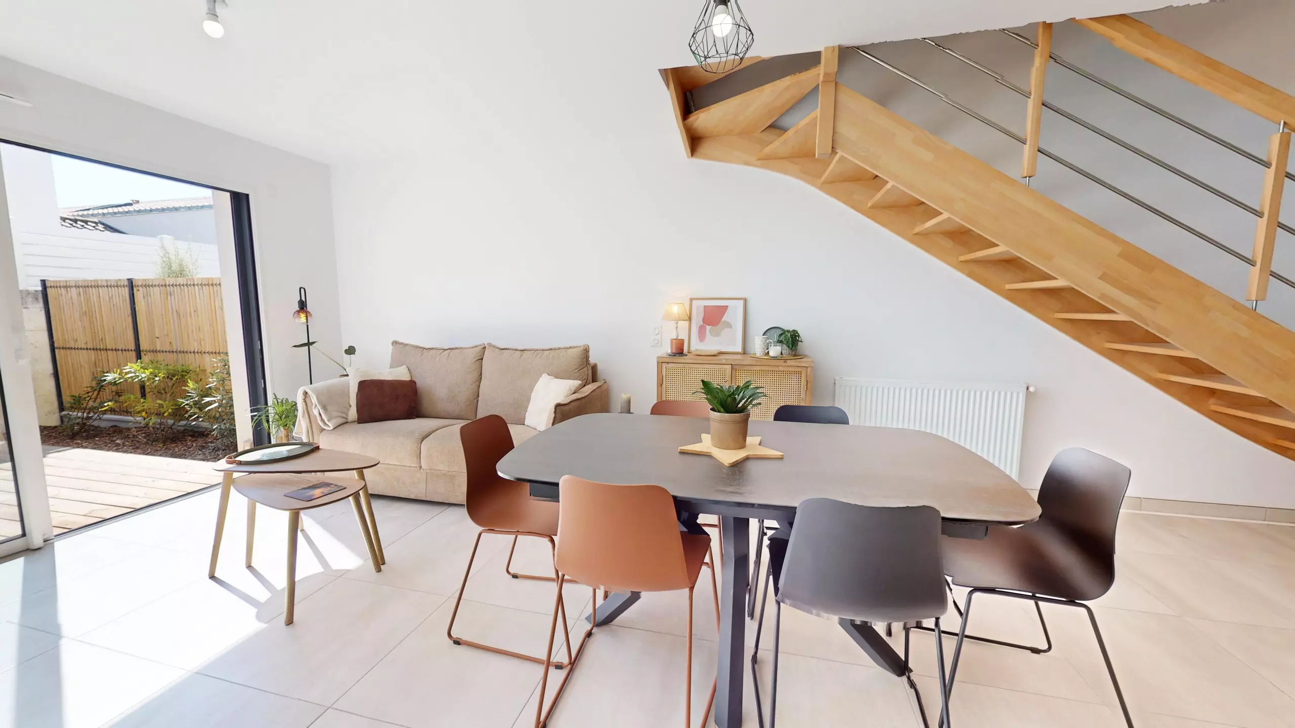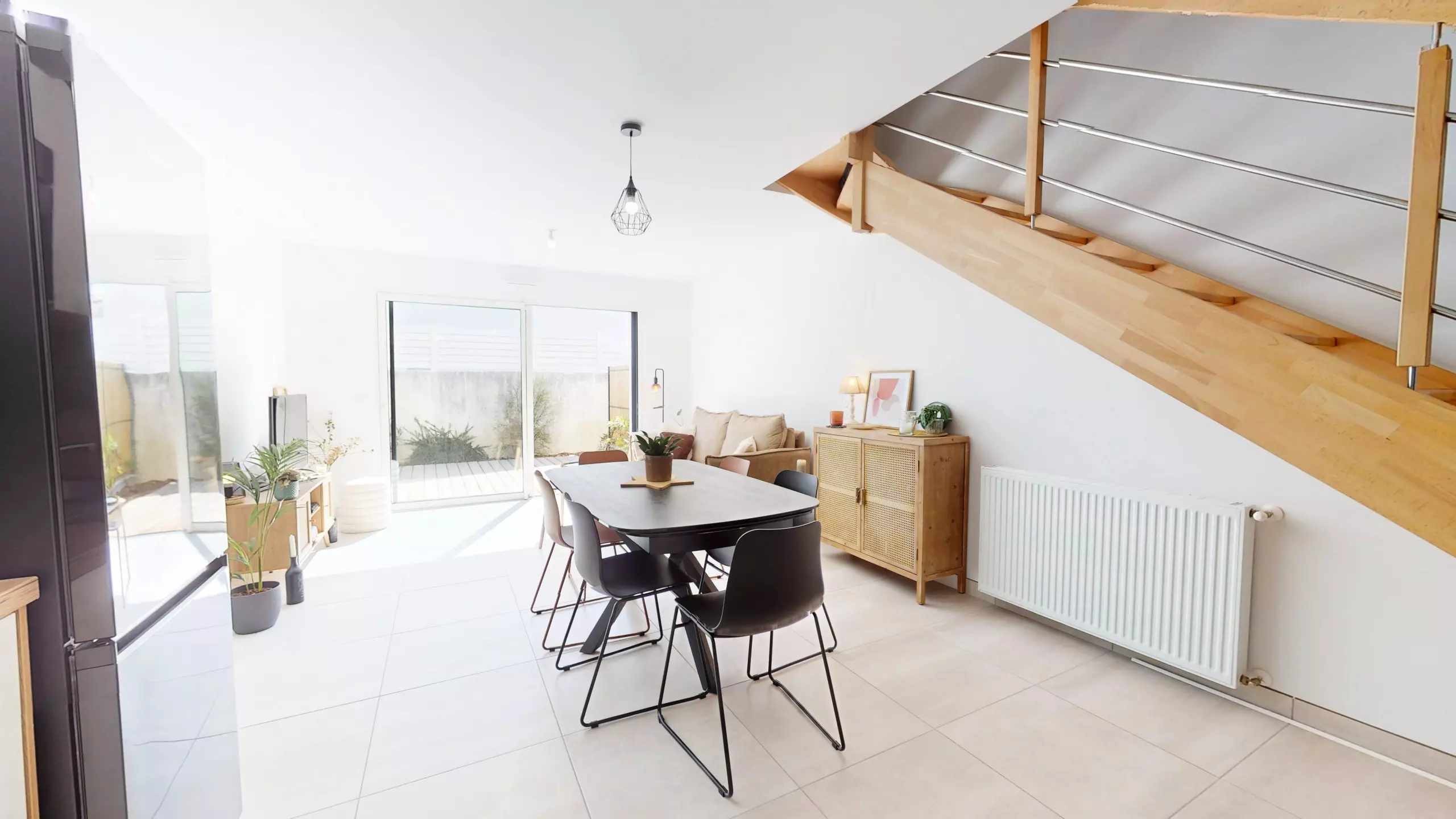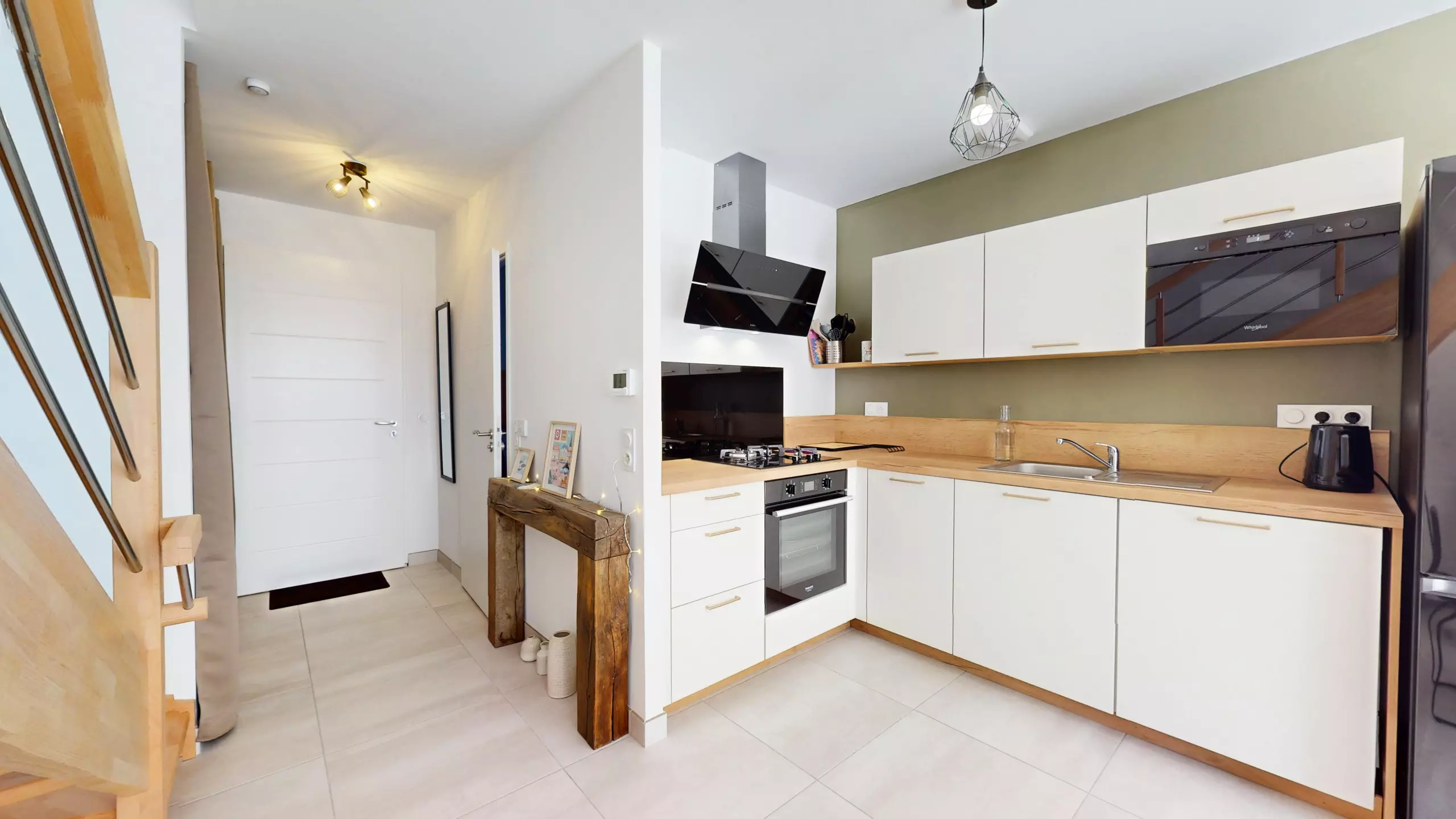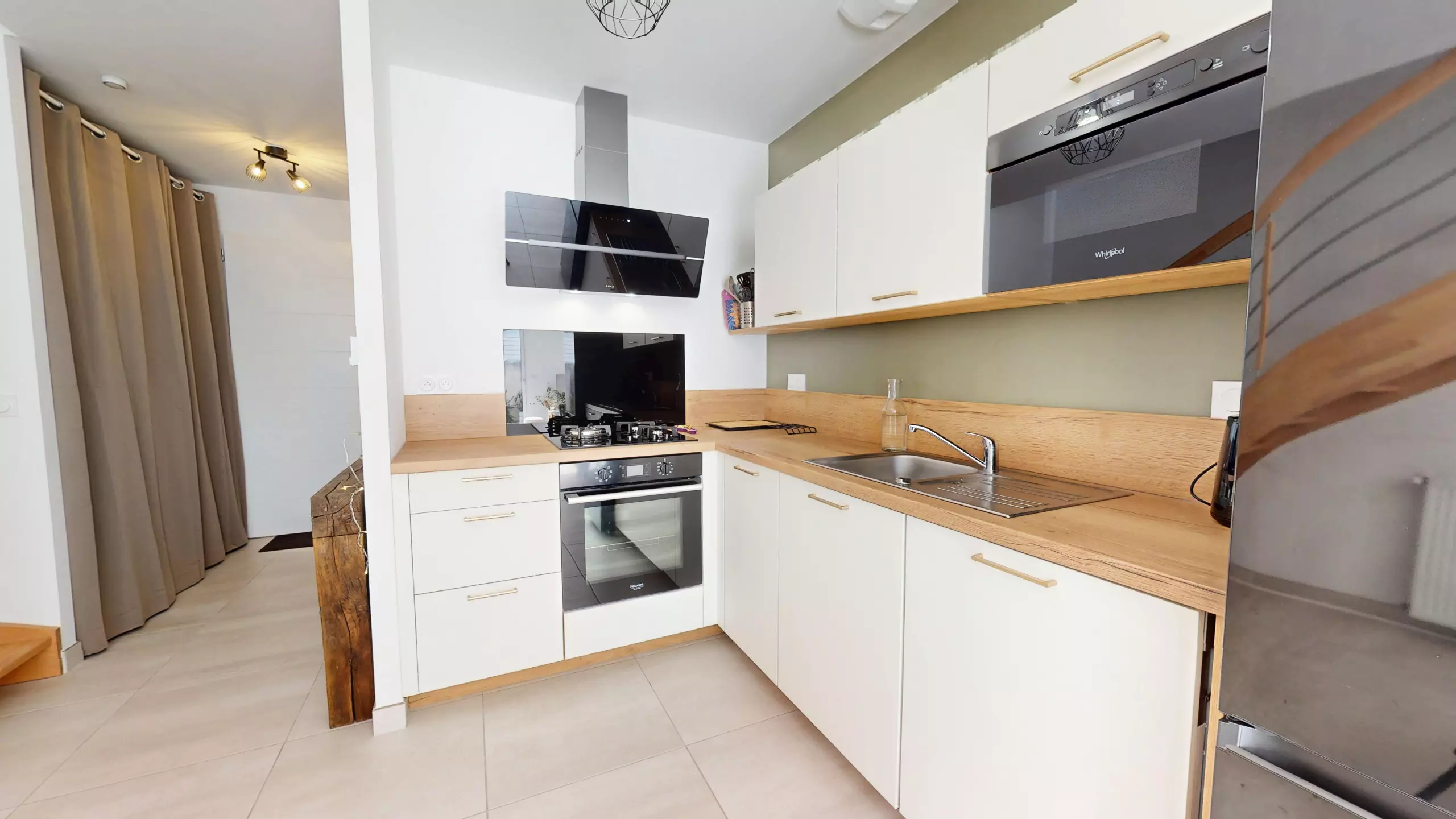 On the ground floor, you will find an entrance hall with a cupboard leading to a fully equipped open kitchen (oven, induction hob, extractor hood, dishwasher, fridge-freezer, microwave), ideal for preparing delicious meals. The sunny living room has a comfortable sofa bed, a smart TV, and opens onto a wooden terrace with garden furniture and an electric plancha, perfect for your outdoor meals.