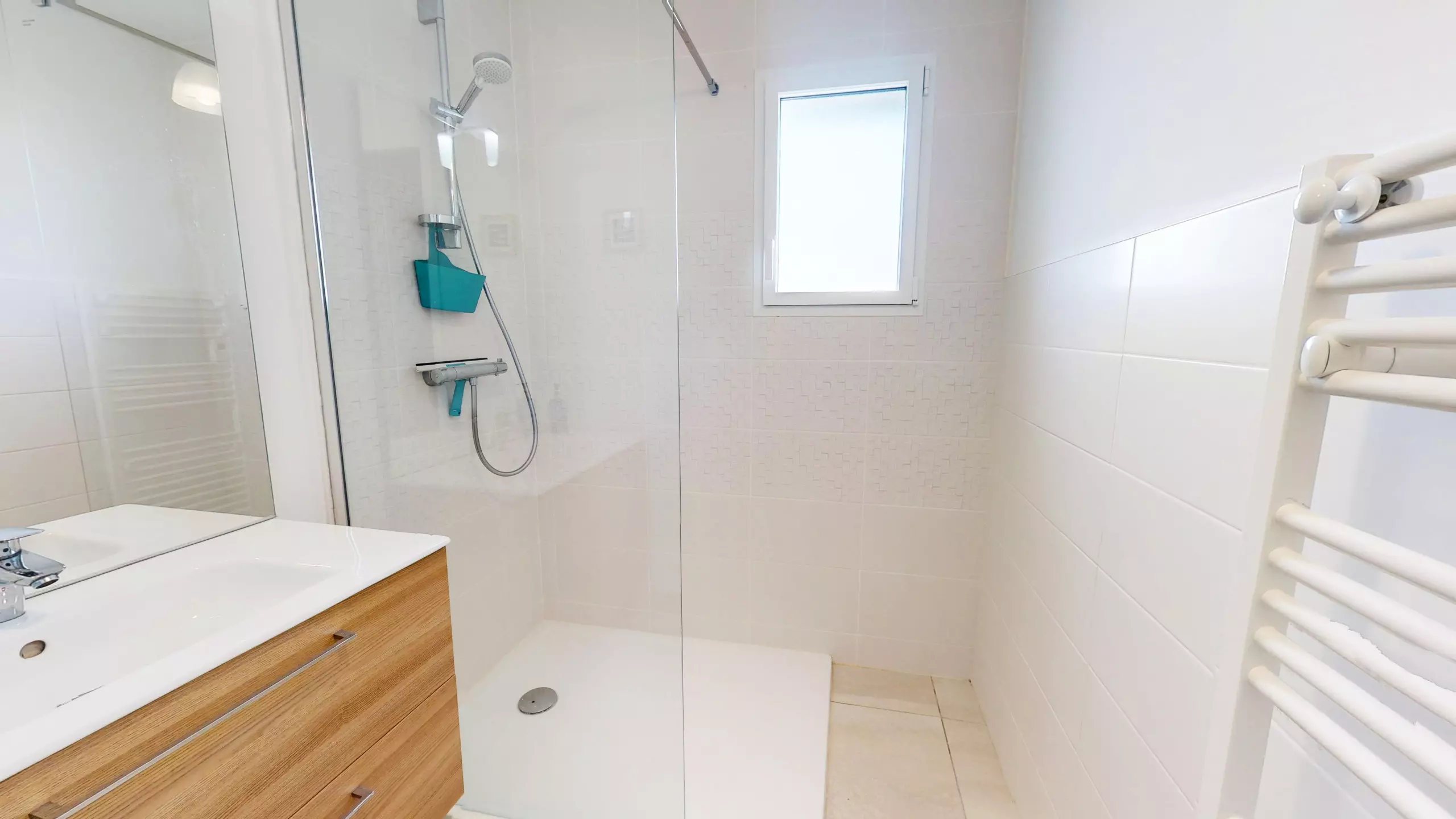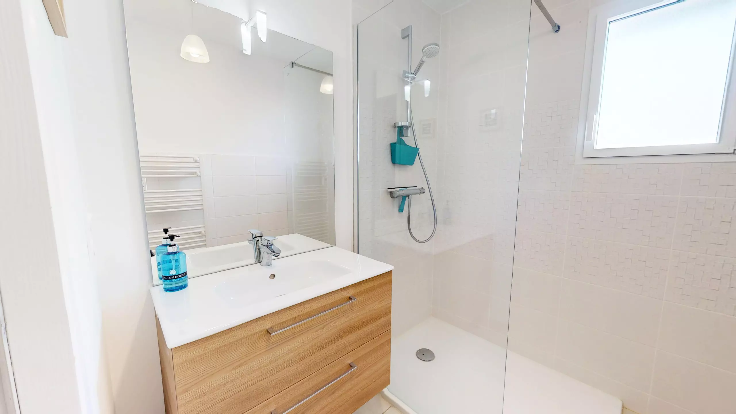 Upstairs, a landing leads to two welcoming bedrooms: one with a double bed (160 cm) and the other with two single beds (90 cm). You will also find a modern shower room on each floor, as well as a separate toilet for added comfort.