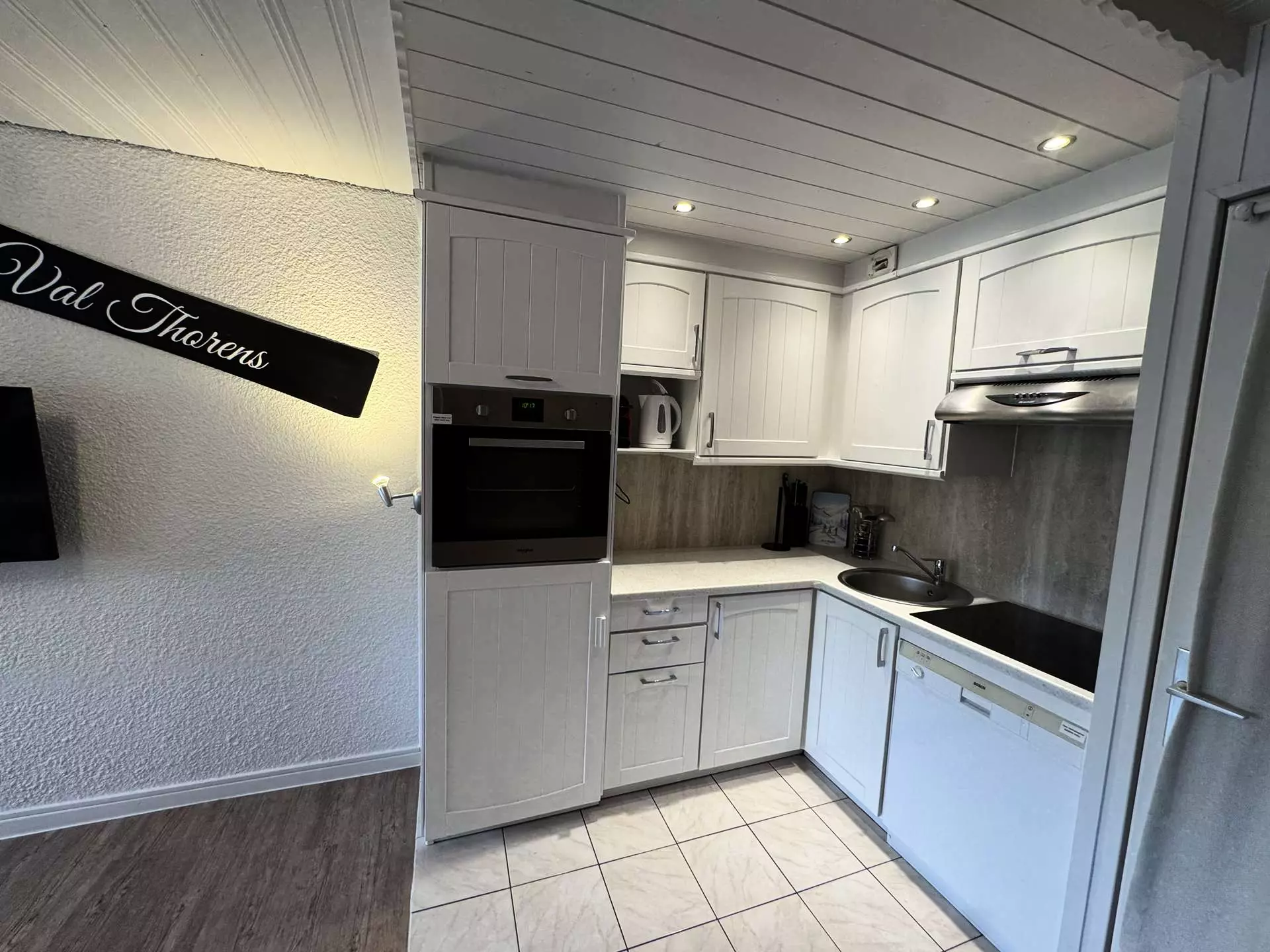 Equipped kitchenette for 6 people with induction hob, dishwasher, oven, microwave, refrigerator, Nespresso coffee machine, toaster and kettle.