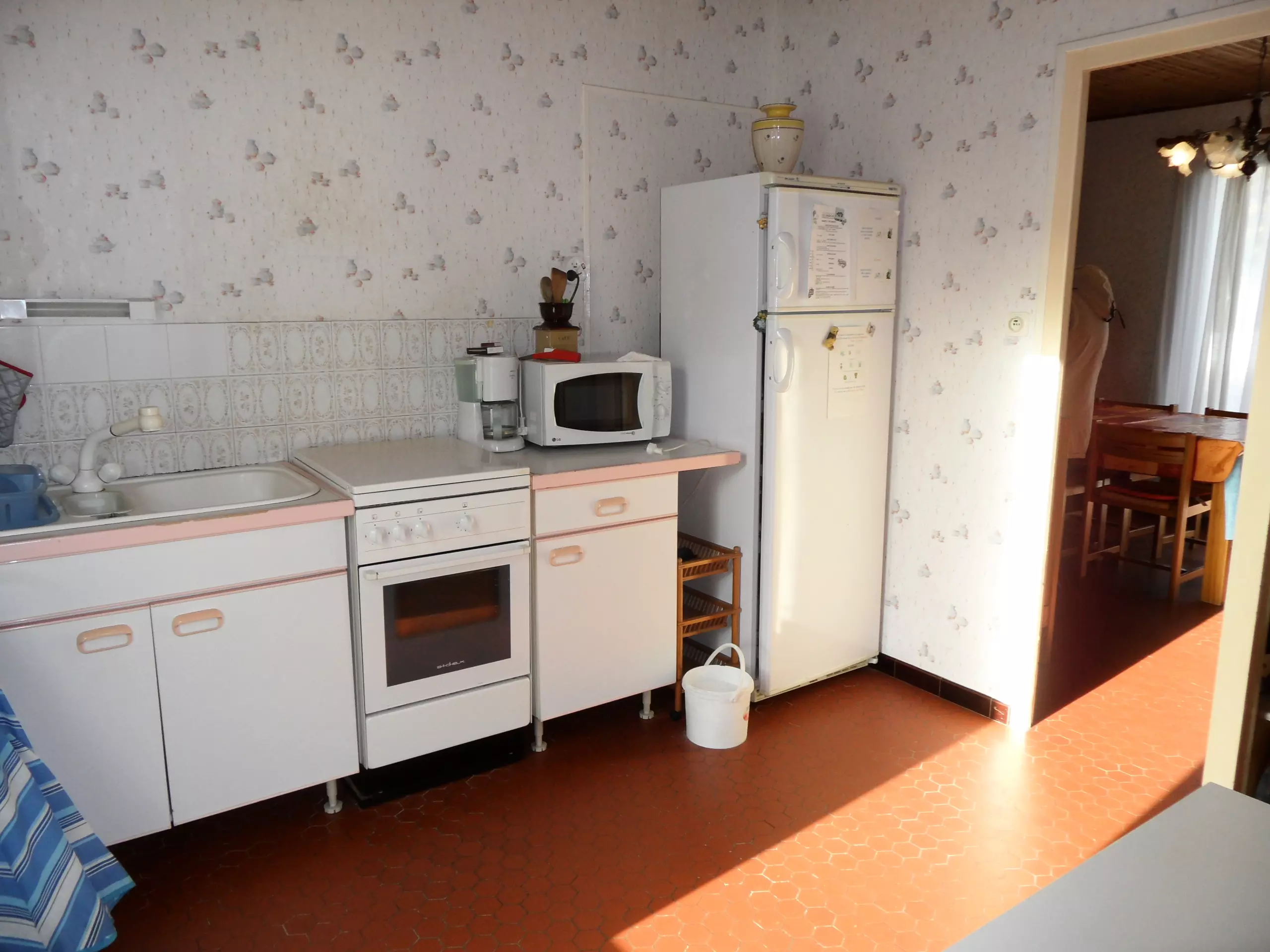 The separate kitchen is fully equipped with a refrigerator, washing machine, kitchen utensils, coffee maker, oven, microwave, and toaster, making it easy to prepare meals.