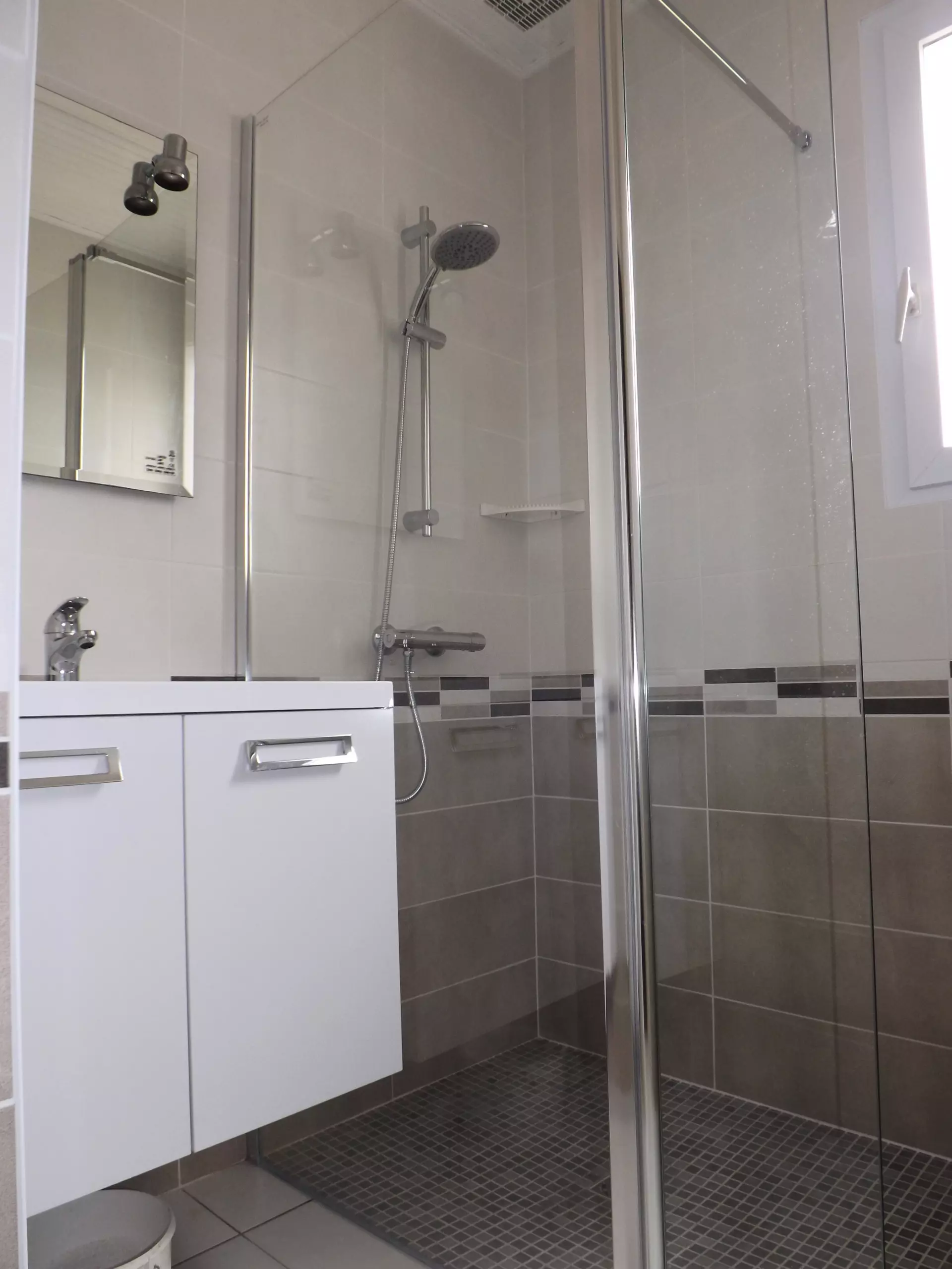 The apartment has two bedrooms and can accommodate up to four people. It has two bathrooms, one with a shower and the other with a toilet only. Heating is provided by electric radiators.