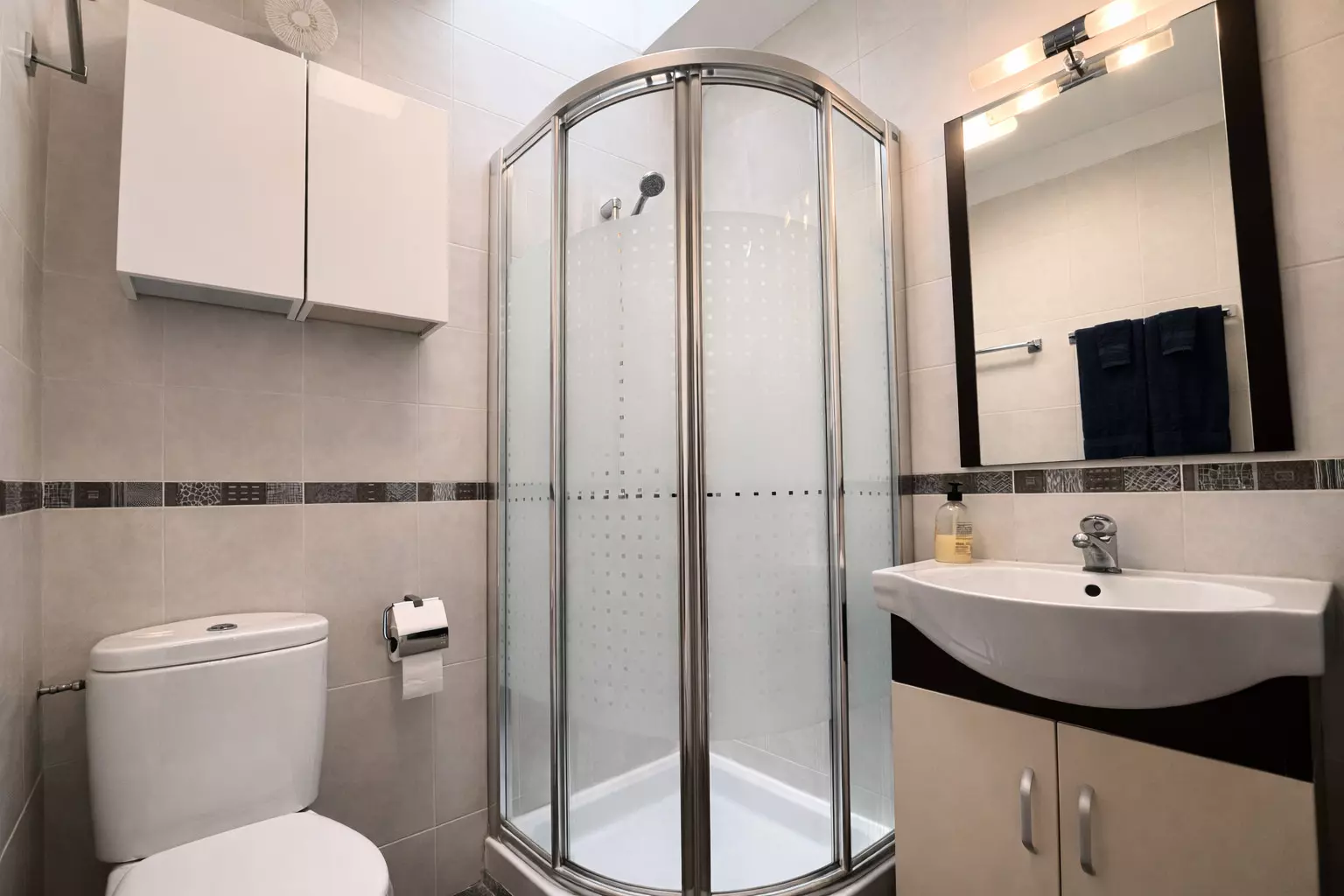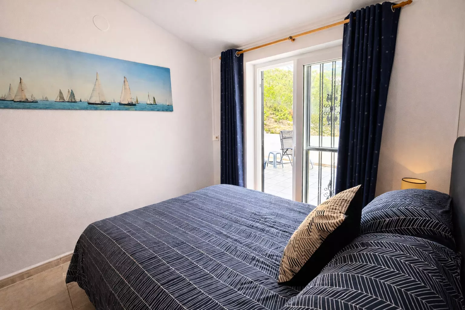 There are 3 bedrooms and a total capacity of 5 people. The two double beds are queen-size, 1.50 m.