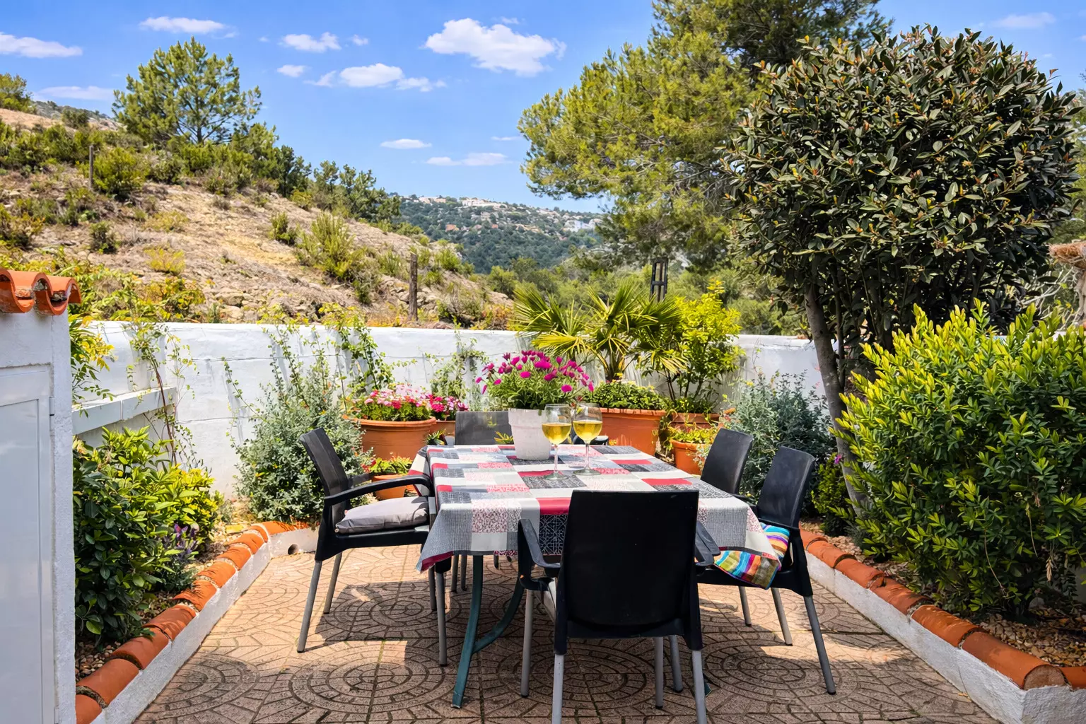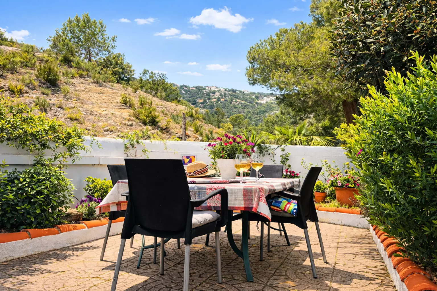 The second terrace overlooks the back of the house, towards the mountain. It is very cool and ideal for breakfast, lunch or dinner with the family during the summer months, in complete privacy.