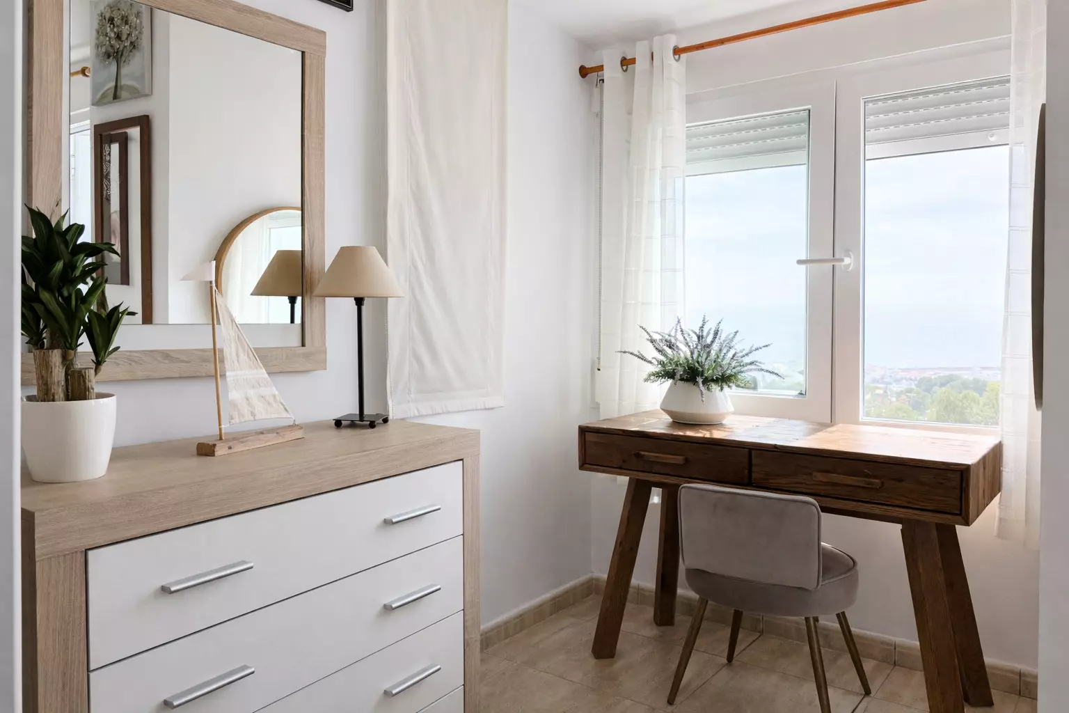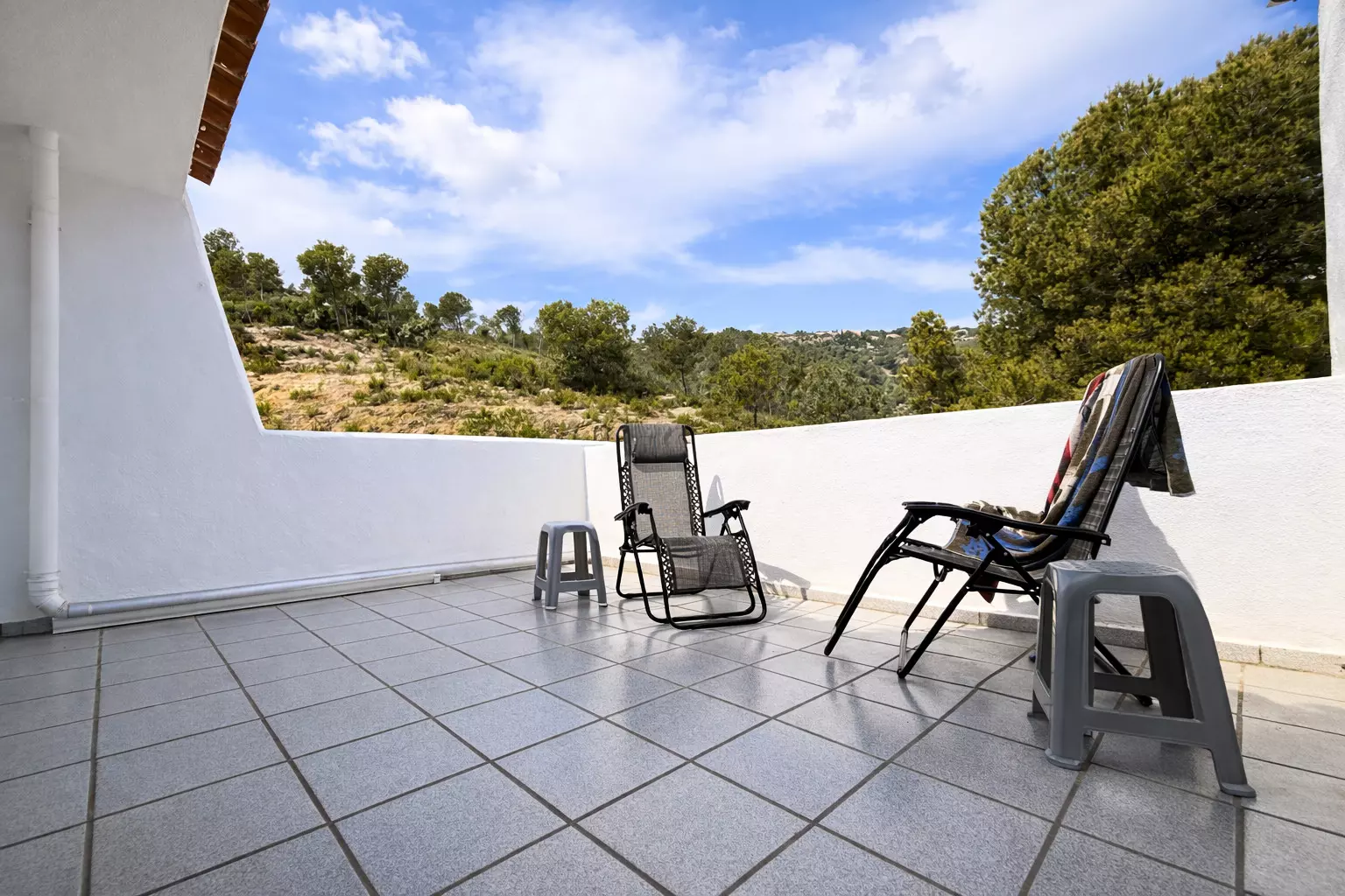The third terrace is located on the upper floor. The three bedrooms are located on this floor, and two of them have private access to the terrace, with mountain views. There is also a bathroom with a walk-in shower.