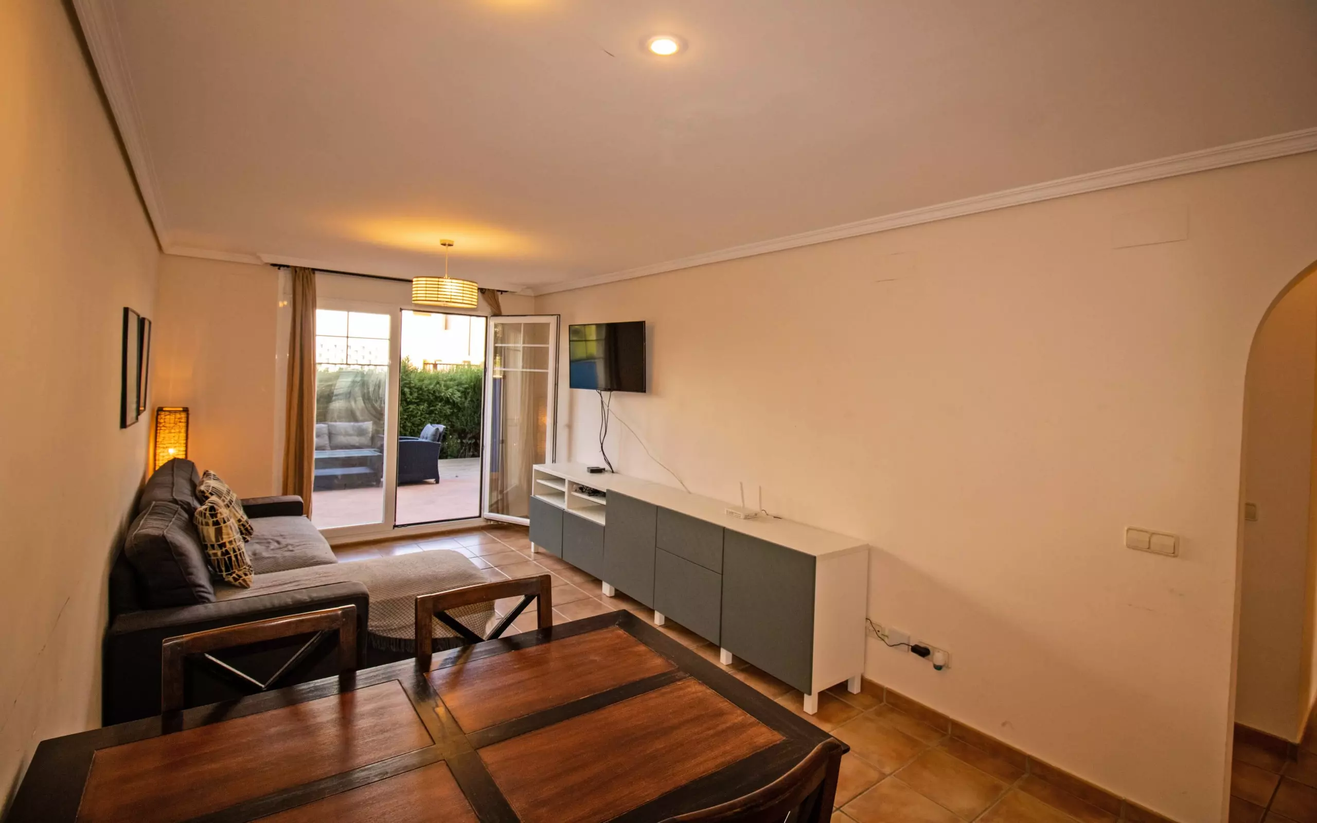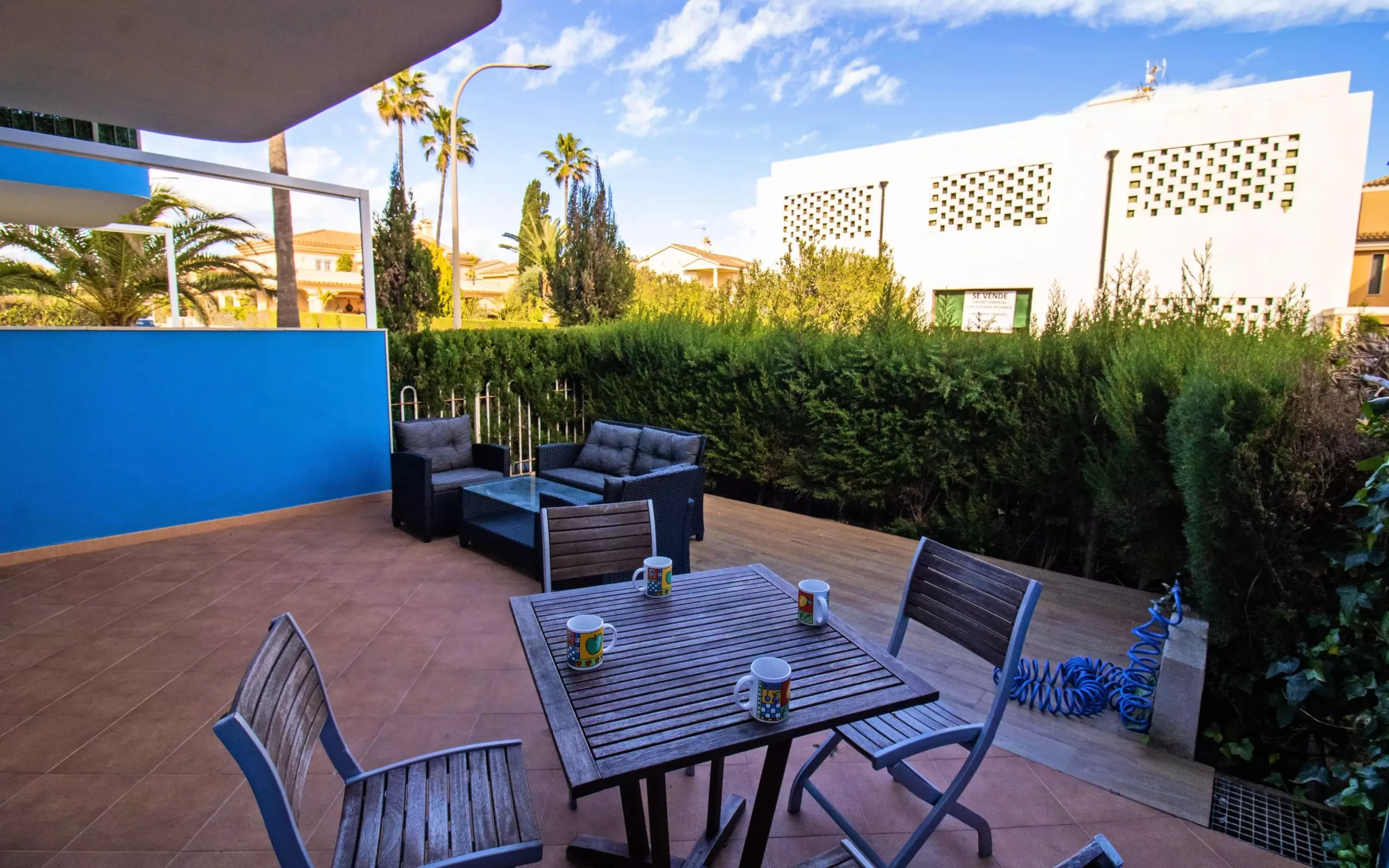 Ground floor apartment on the seafront in the quiet and family-friendly Tres Playas development. This apartment has 2 bedrooms and 2 bathrooms for up to 4 people. It has Wi-Fi and air conditioning throughout. It also includes a parking space in a secure garage.