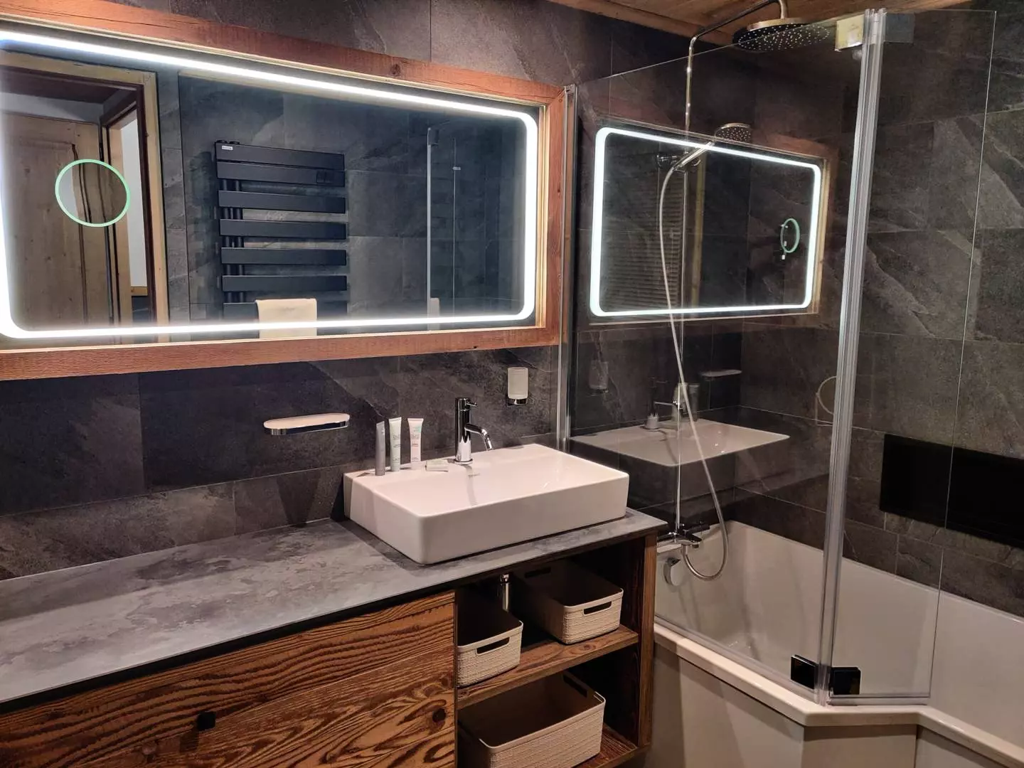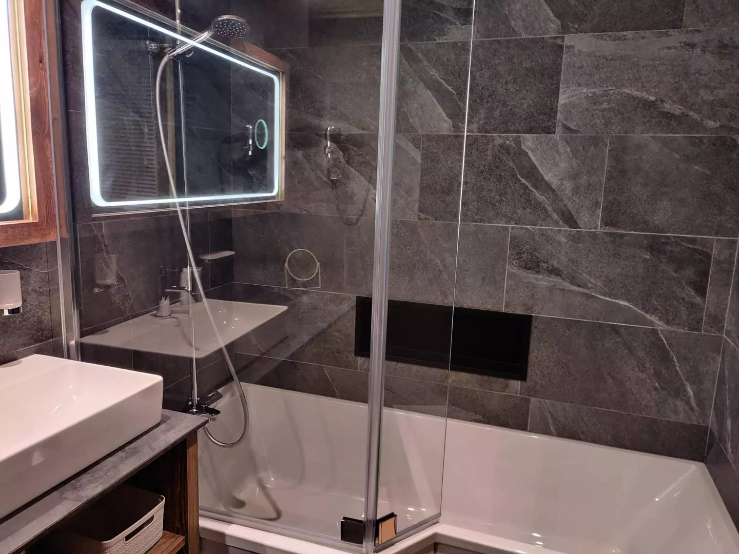 - Bedroom 3: Double bed (160 x 200 cm) with en-suite shower room and WC. Direct access to a balcony. View of the slopes