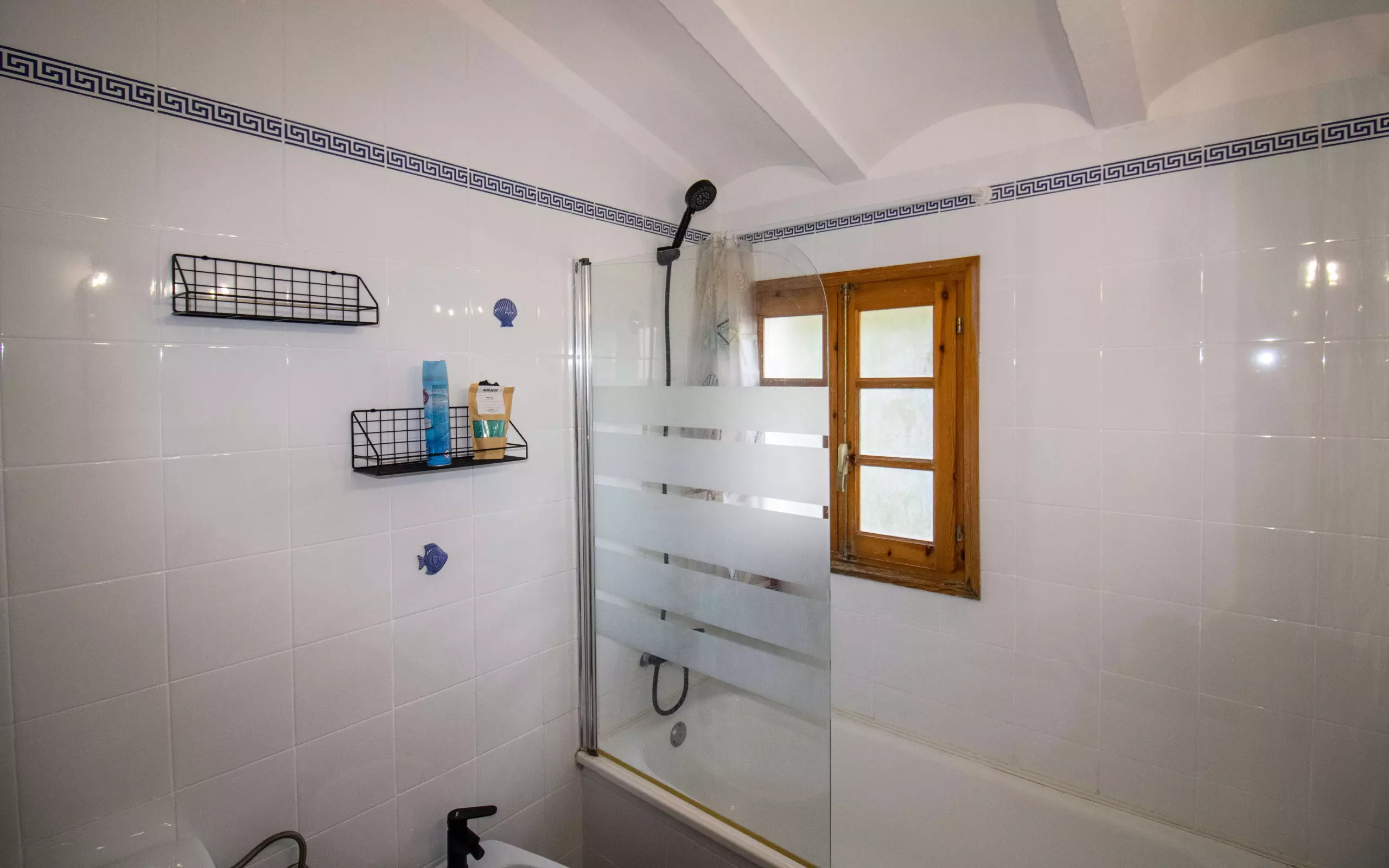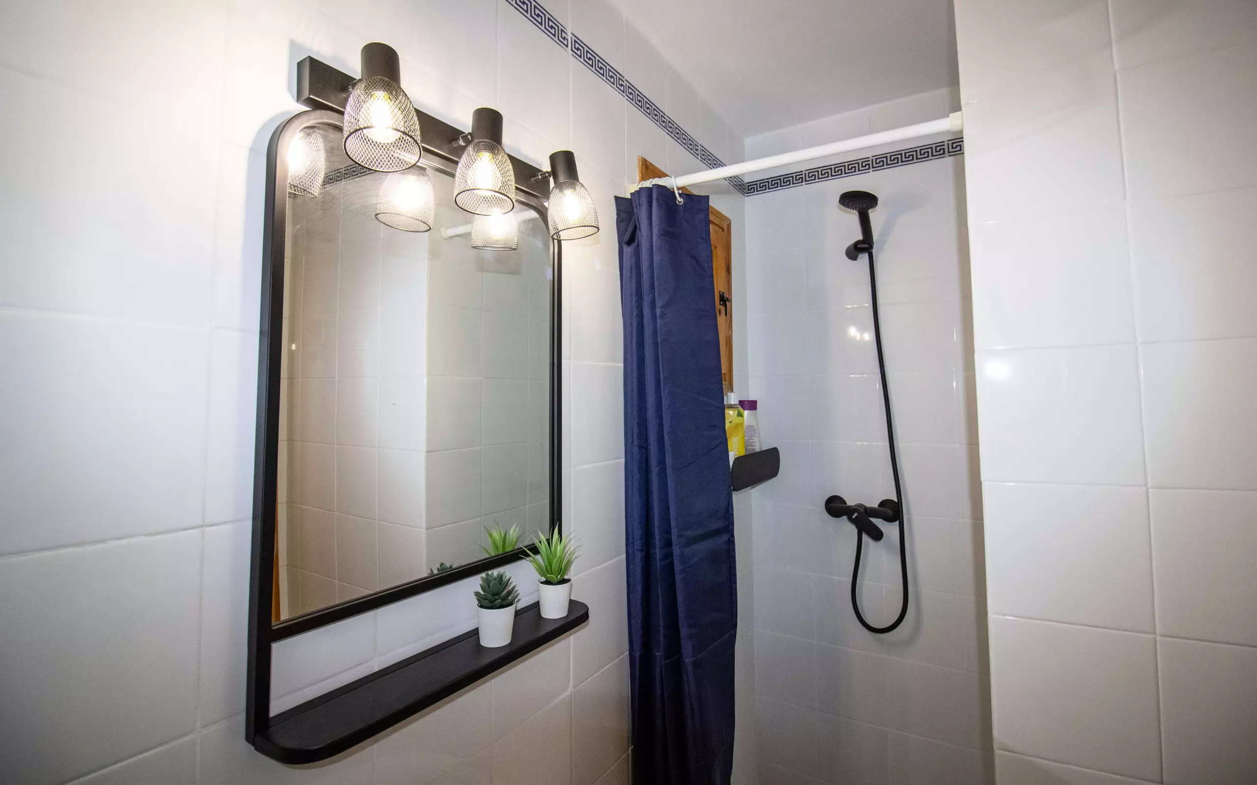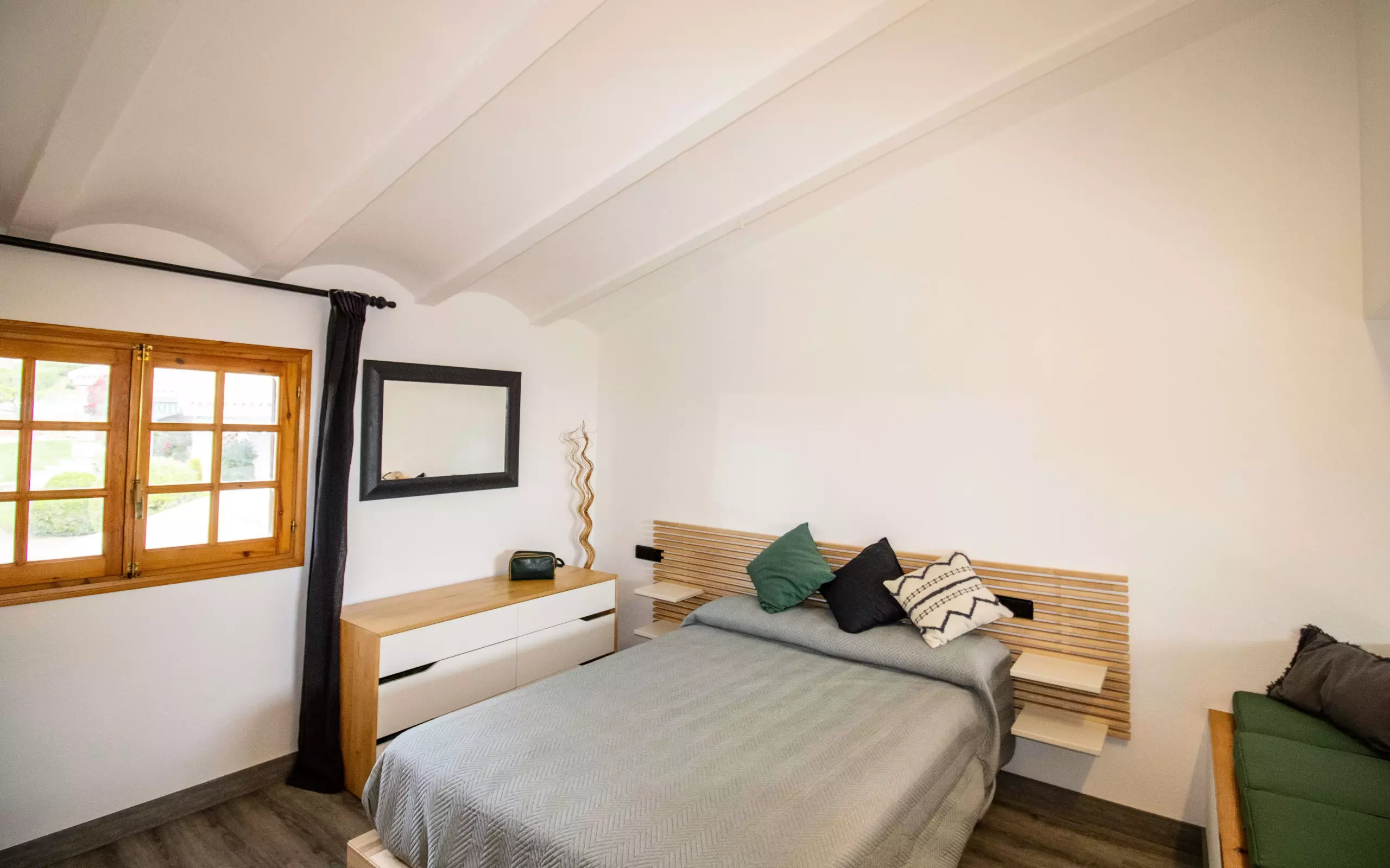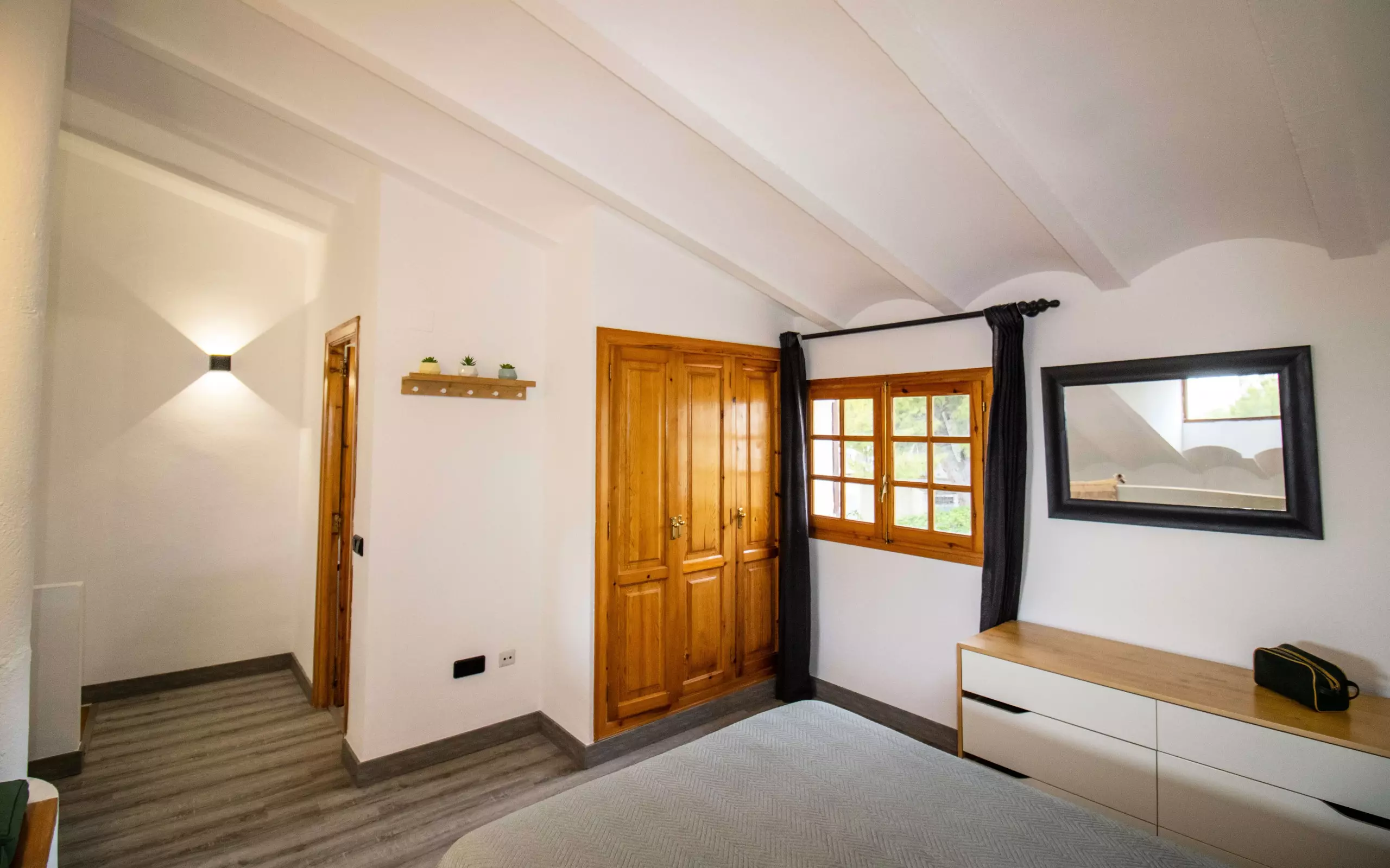 Upstairs, the master bedroom with a double bed, a built-in wardrobe and an en-suite bathroom with shower.