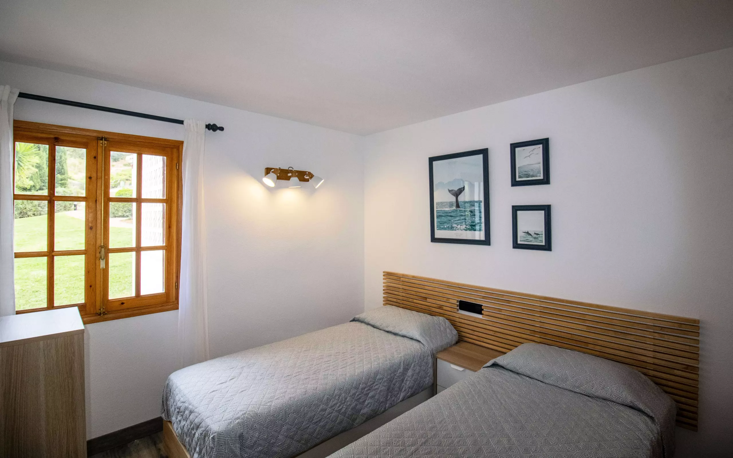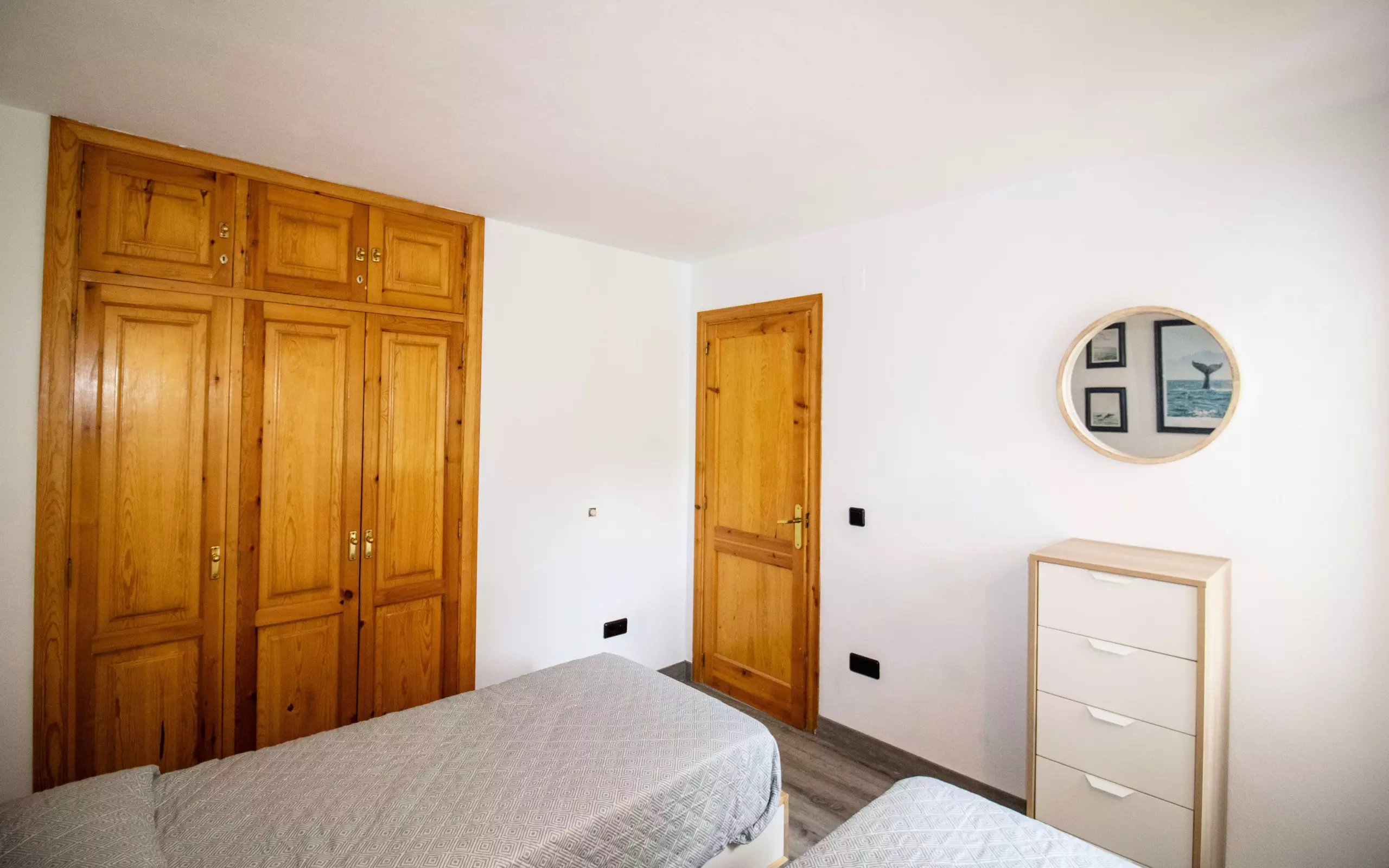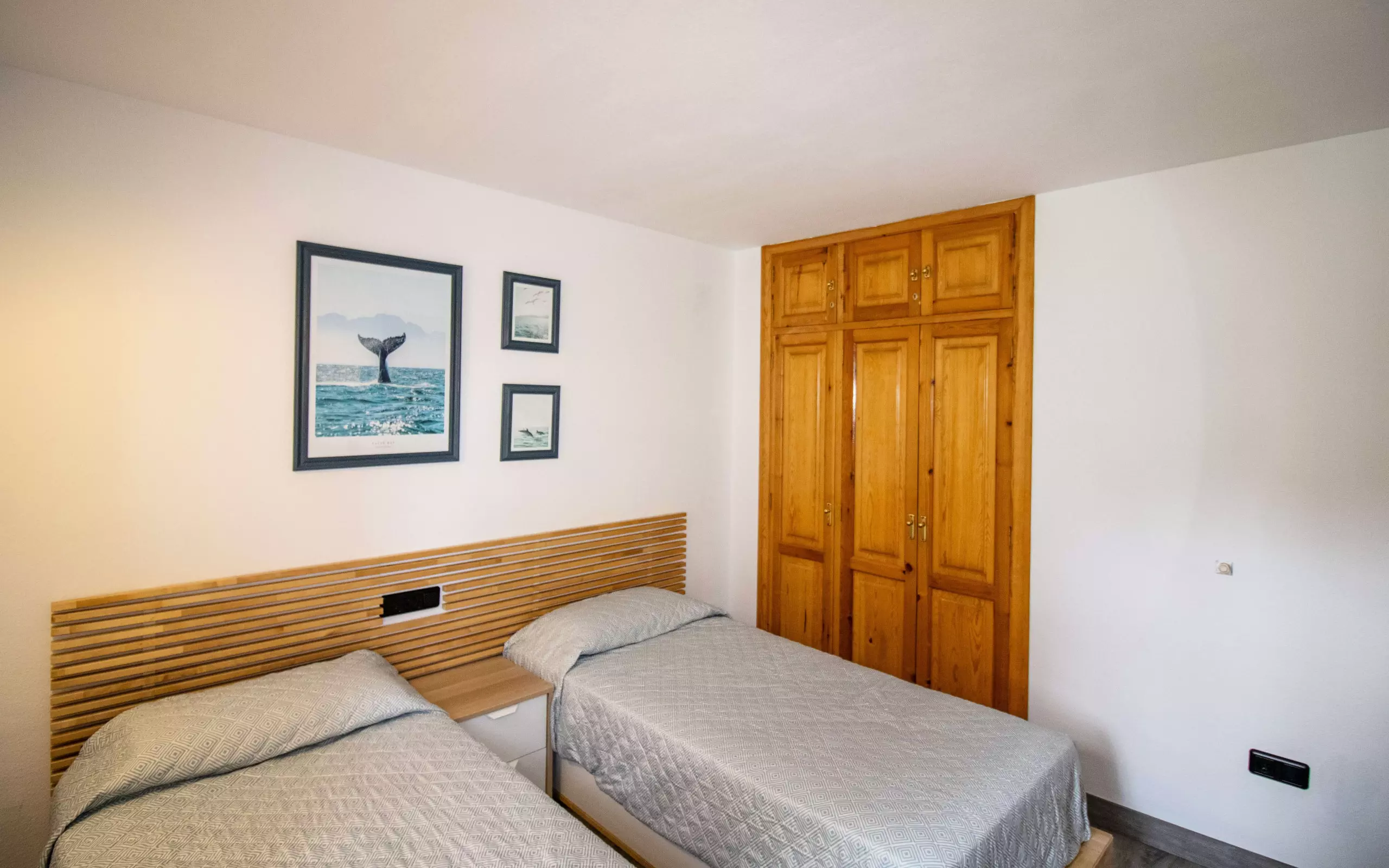 Then, a bedroom with two single beds and a built-in wardrobe.