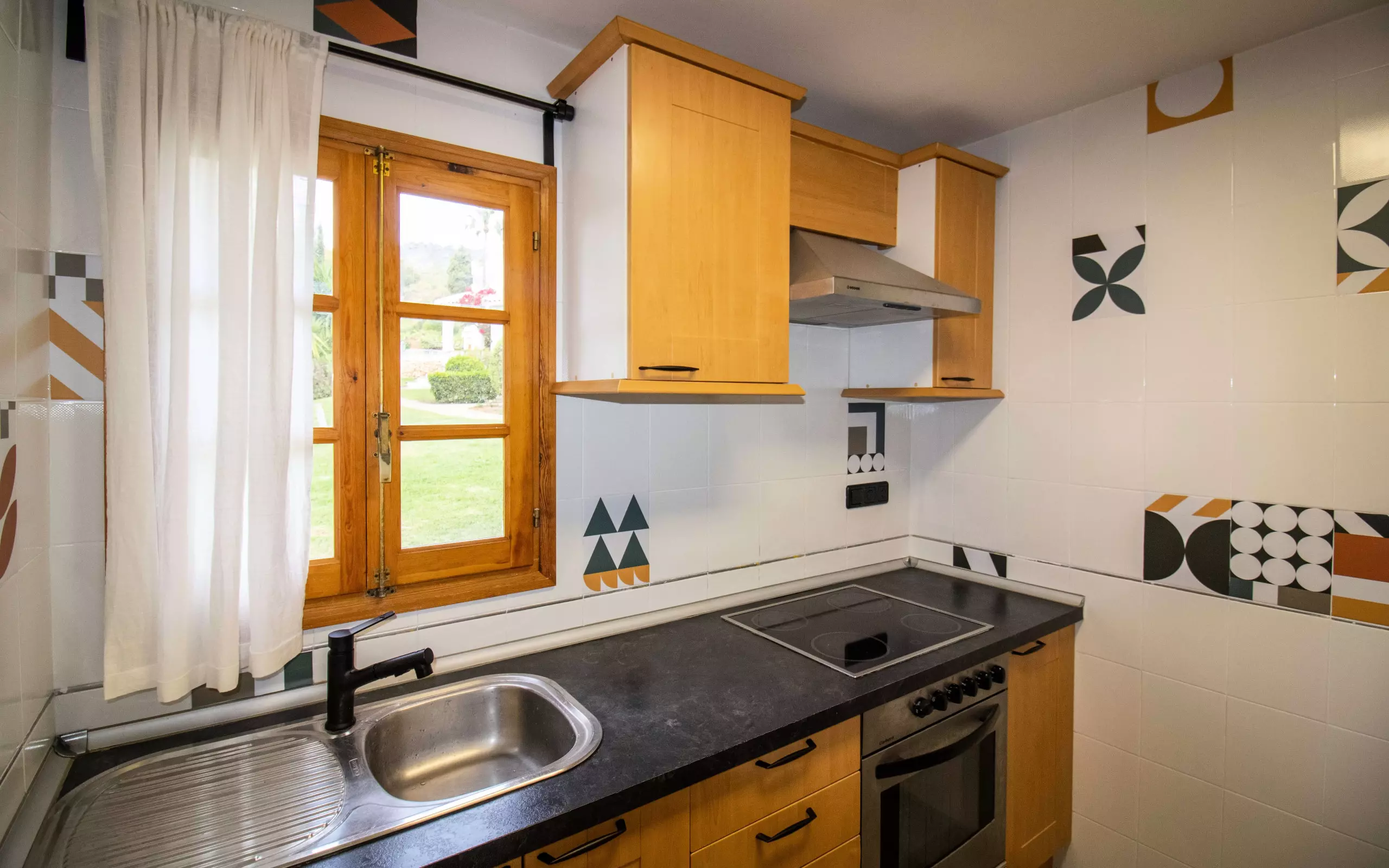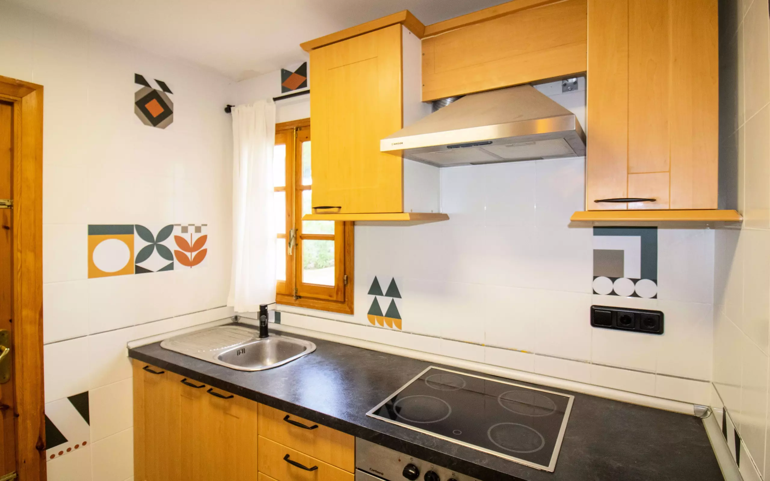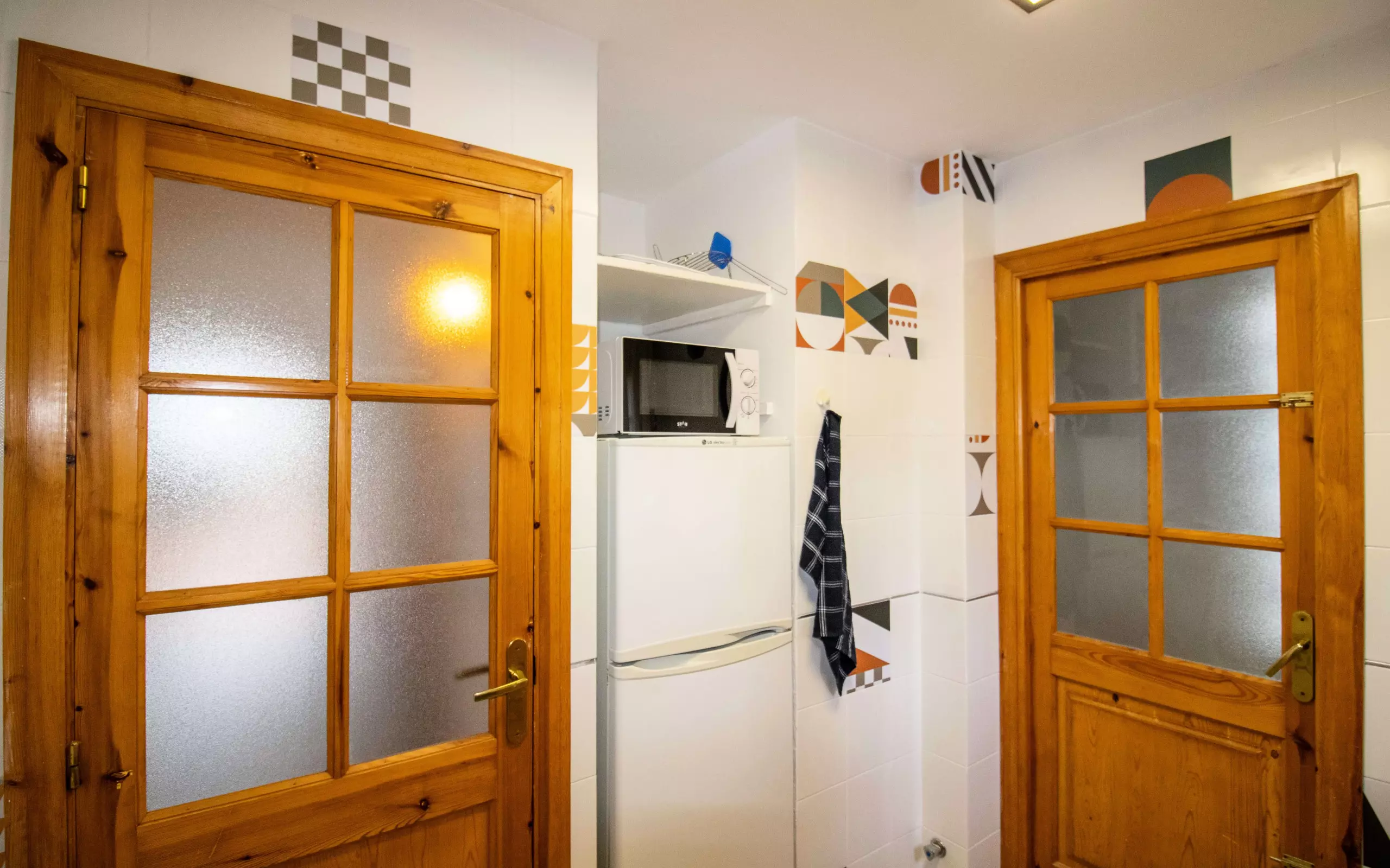 The independent kitchen, with ceramic hob, is equipped with a refrigerator, microwave, oven, freezer, dishes, kitchen utensils, coffee maker and toaster.