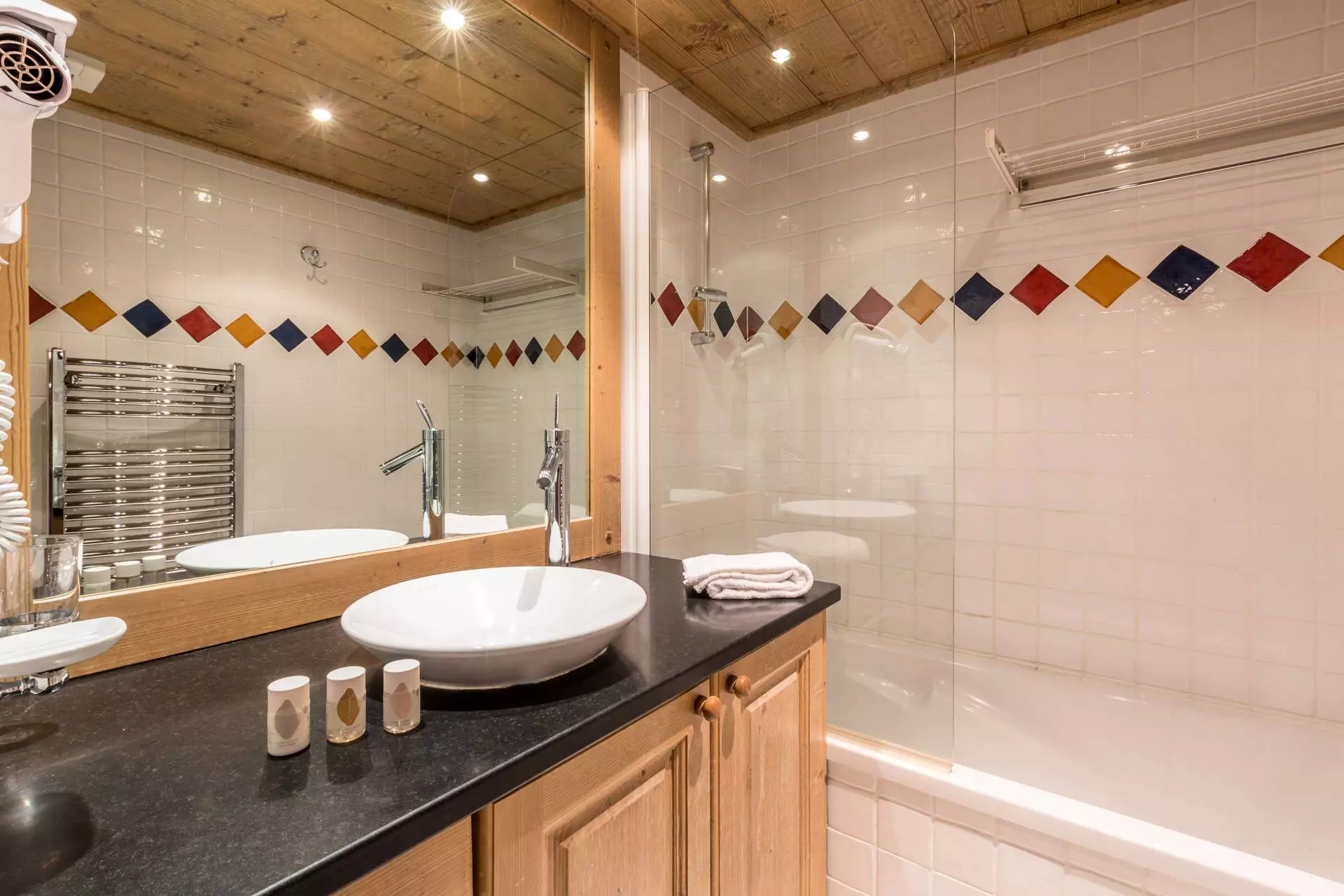 - 1 bathroom with towel dryer and 1 separate WC