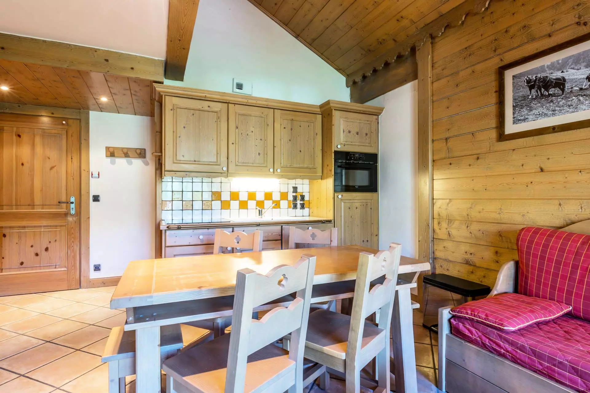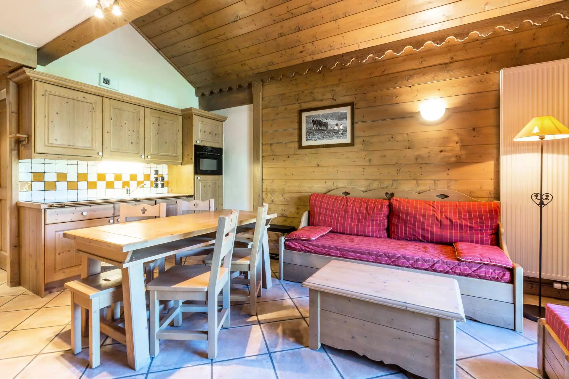 - Comfortable living room with satellite TV and SOUTH-WEST facing balcony, view of the slopes and village with guaranteed sunset, located on the 1ST FLOOR with elevator