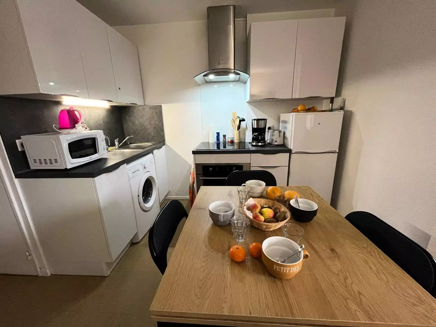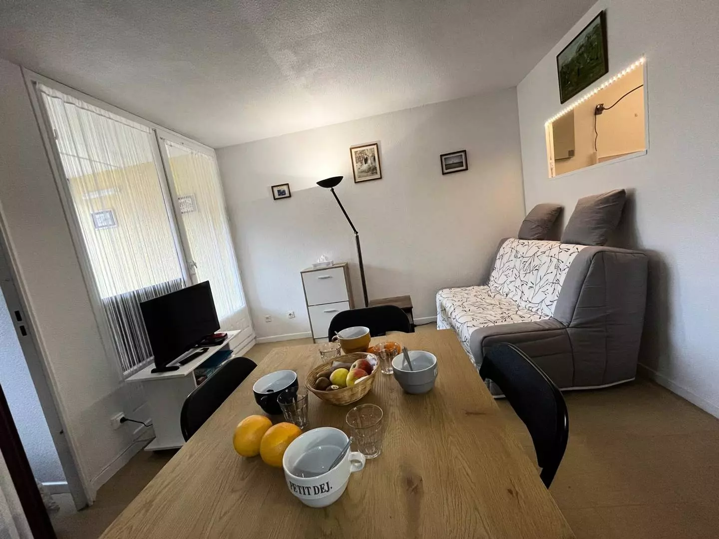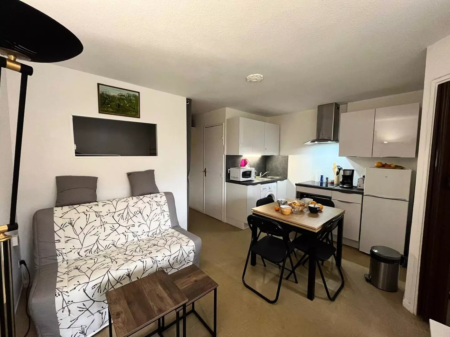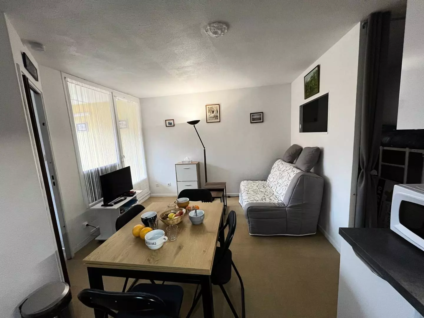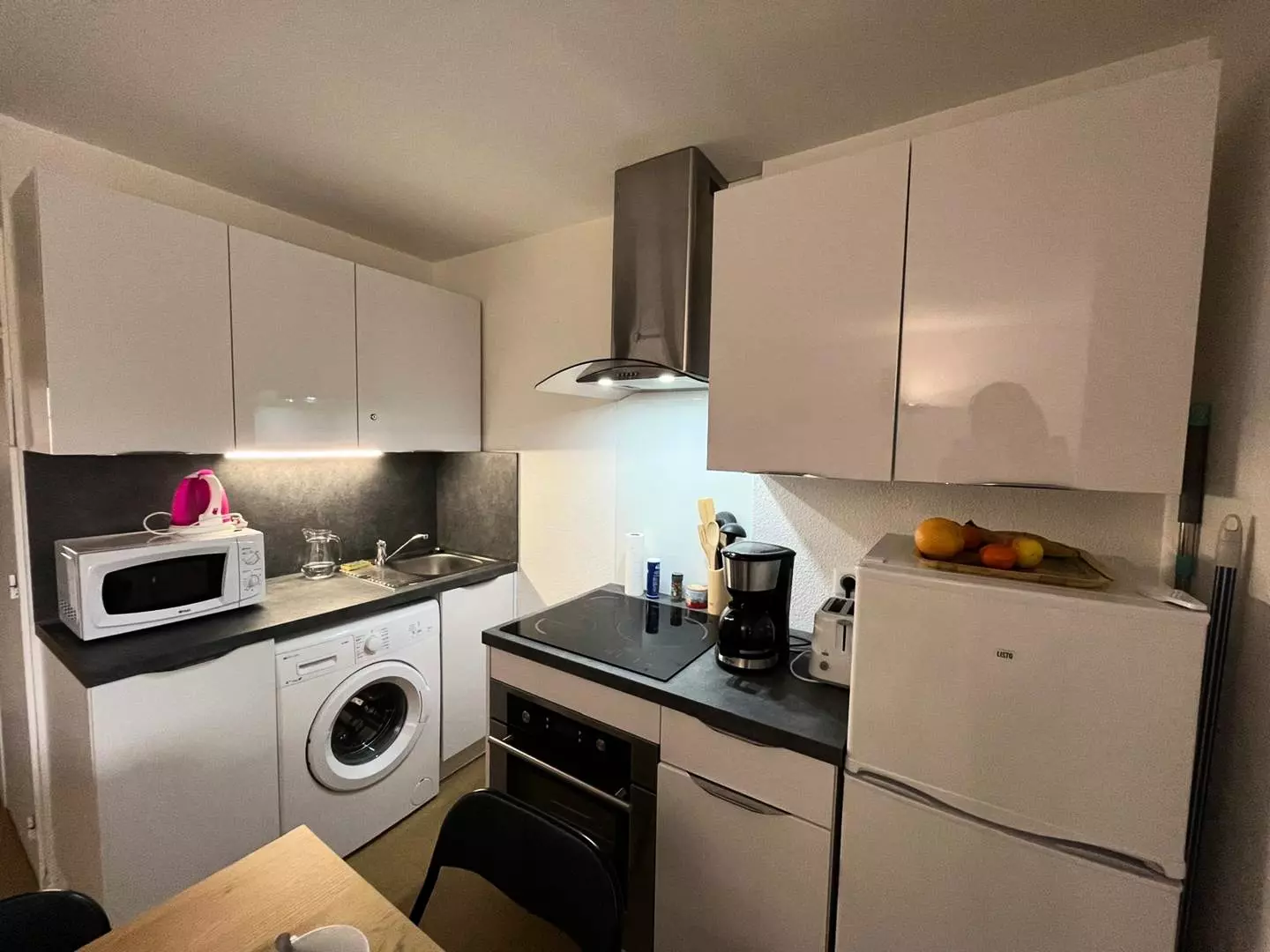 Composed of a living room kitchen with sofa bed, television, fridge-freezer, washing machine, microwave, kettle, filter coffee maker, toaster etc.